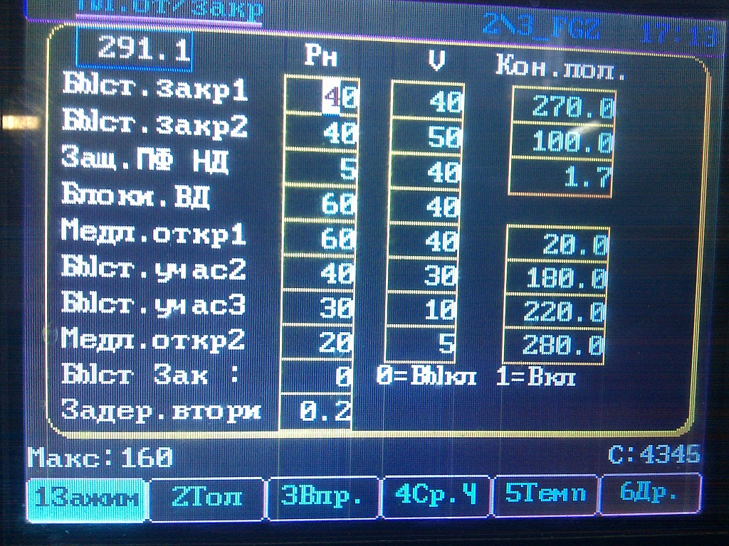 Давление 5 бар, скорость 40% действует до 1.7 мм. Если плиты коснутся на большем расстоянии(между плитами помеха), тогда авария. Если расстояние меньше или равно 1.7 мм, тогда переход на высокое давление запирания.