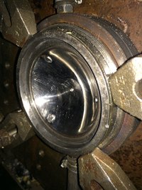 Боюсь ошибиться, но глядя на фото видно, что форма без охлаждения и термостабилизации. Отливку с первого цикла держит на пуансоне (на подвижной половине)? Как и ЧЕМ организован съём изделия? Расположения системы толкания не видно. И почему такой резкий переход от ПК на ПСМ? Из ПММА не пробовали? Углы уклоны сьёма на пф смотрели, может стоит увеличить и зацепы сгладить немного на пуансоне?