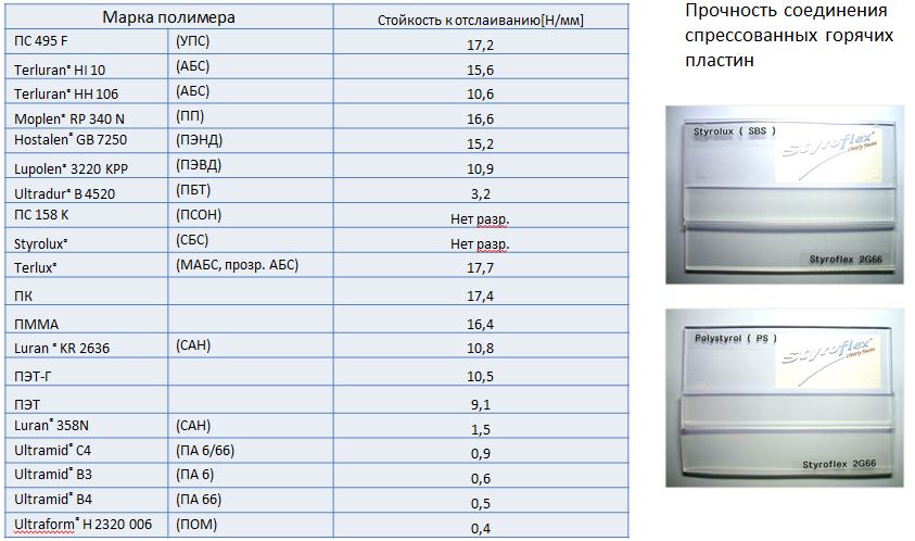 Показательны испытания на адгезию между спрессованными пластинами Стирофлекса и пластинами других пластиков, прозрачных и непрозрачных: МОДИФИКАЦИЯ АБС и ПОЛИОЛЕФИНОВ