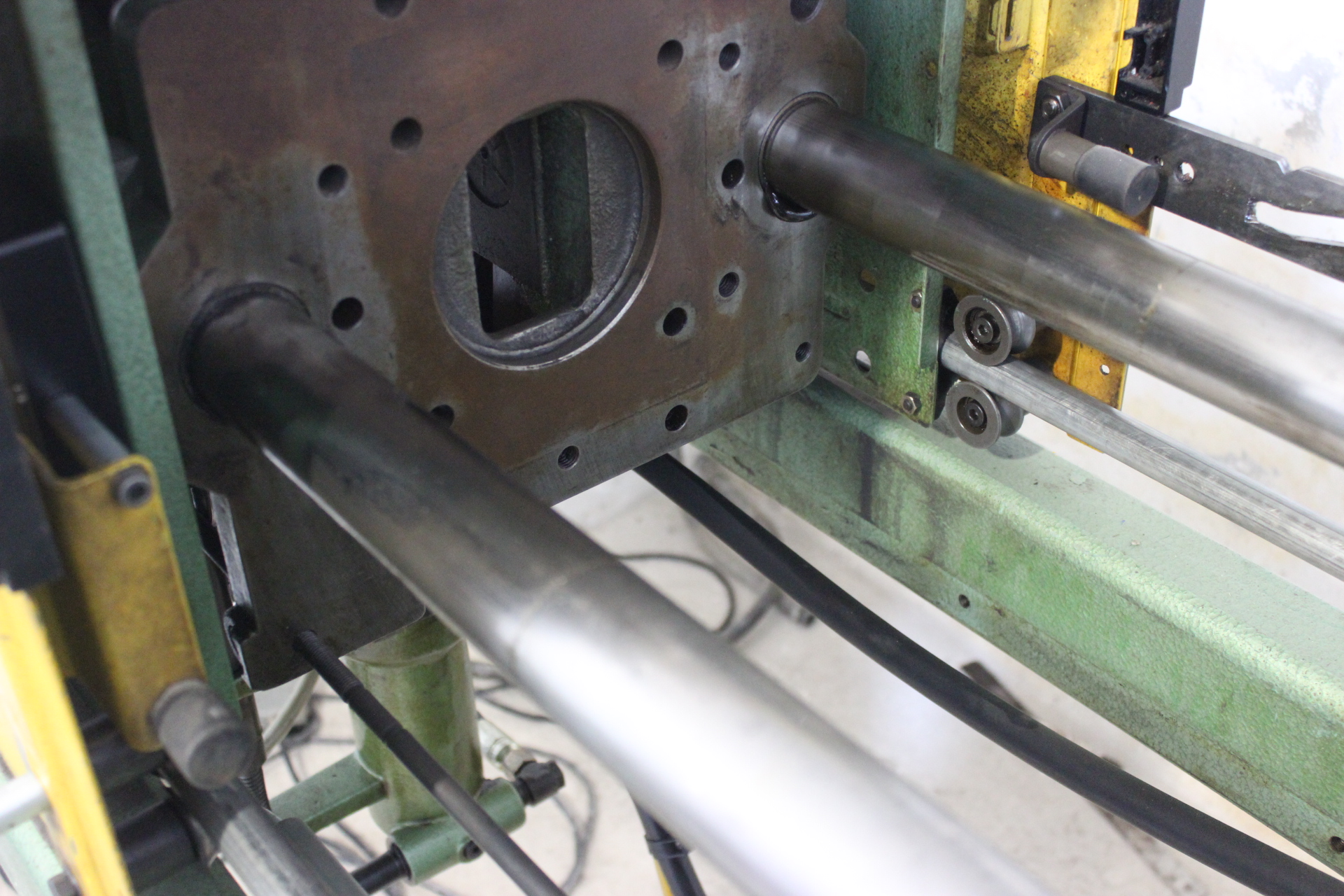 2) на подвижной плите (на фото внизу слева) вкручена шпилька, причем насколько я понял (и это видно), ее длину необходимо регулировать в зависимости от высоты установленной пресс-формы. на неподвижной плите есть ответное отверстие, куда и входит эта шпилька, замыкая концевой выключатель. не могу понять что именно происходит при нажатии этого выключателя (снижается скорость закрытия пресс-формы, или снижается давление закрытия формы???). И последнее - все бы хорошо, но вот какая штуковина, заметил, что на неподвижной плите есть масленки - значит плита не совсем намертво сидит. На поверку оказалось, и на фото заметно, между неподвижной плитой и станиной есть зазор порядка 3 мм, оказывается, между плитой и станиной есть что-то вроде резиновых амортизаторов. внимательно изучив концевой выключатель, о котором писал несколько выше, таки увидел, что в одном корпусе находится два выключателя. один срабатывает при нажатии на него шпилькой, а второй должен сработать, когда расстояние между станиной и плитой уменьшится как раз на 3 мм. пришел в выводу, что когда пресс-форма смыкается, давление развиваемое гидроцилиндром на узле запирания должно сжать эти амортизирующие резинки, а нажатие второго контакта, говорит о том, что достигнуто максимальное усилие запирания и начинается впрыск. Сталкивался ли кто с таким??? прокомментируйте плиз.