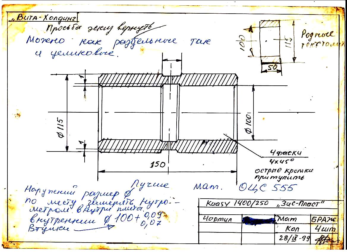 Добрый день. Многие наверное сталкивались с проблемой износа втулок скольжения подвижной плиты. Есть ли у кого-нибудь чертежи втулок на ку аси 1400?