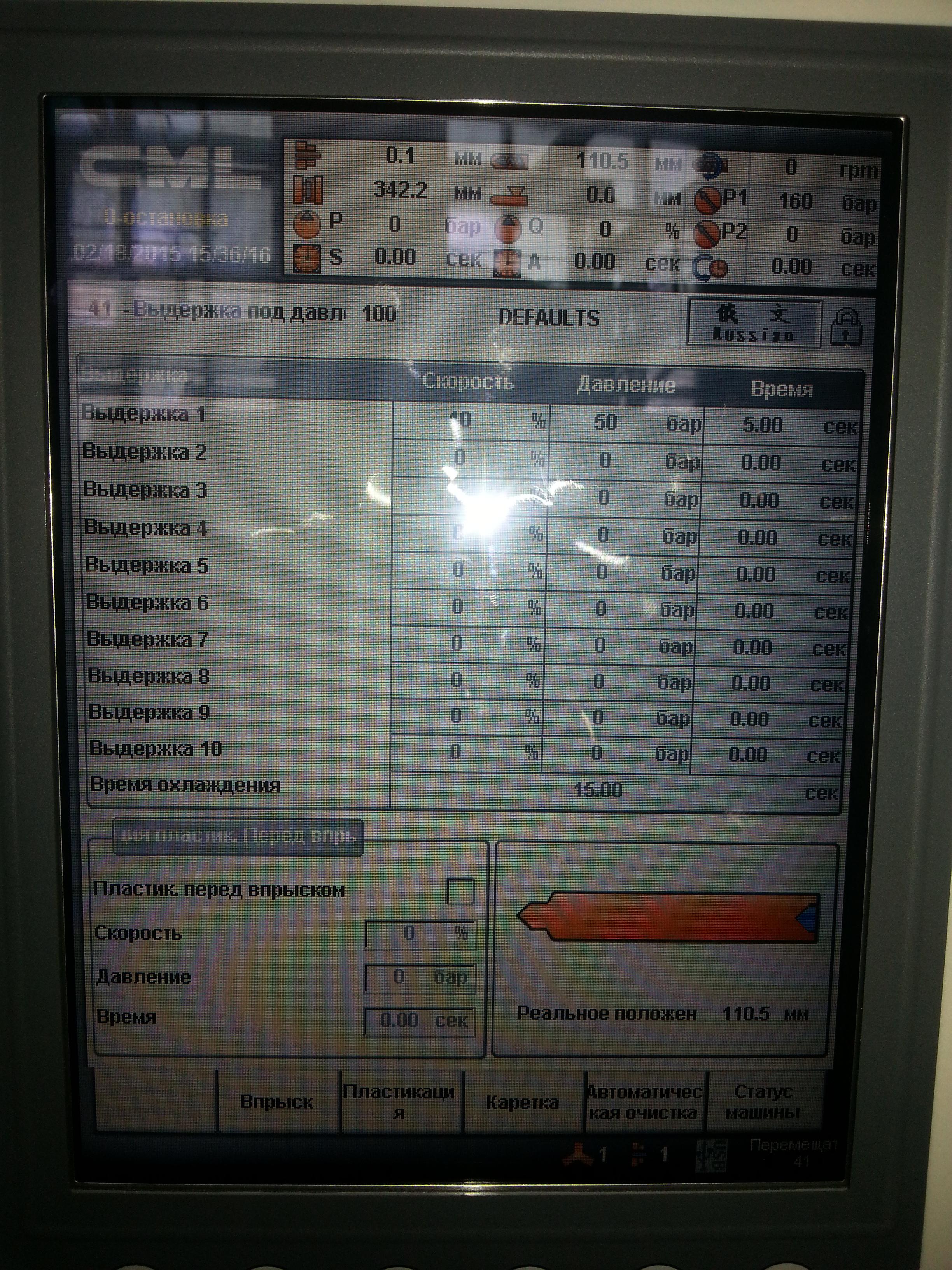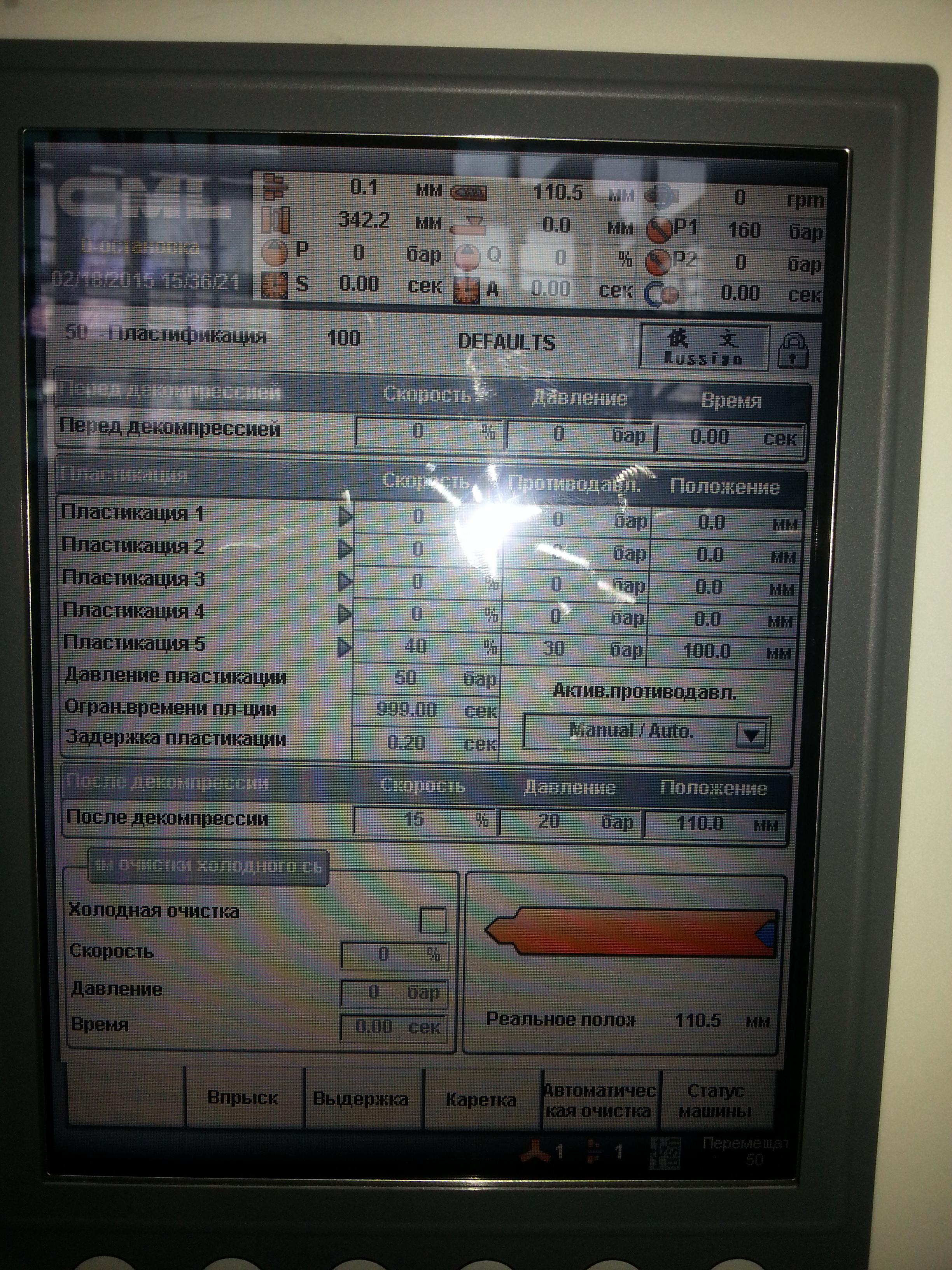 Всем привет! Приобрел два станка в Китае, один 190 тонн, другой 260. 260-й подключили и запустили без проблем, а на 190-м как будто кусок цикла отсутствует. При запуске в автомате или полуавтомате машина производит смыкание и тут же переходит к охлаждению, не производя впрыск. Затем происходит размыкание и срабатывание толкателей. Конец цикла. Бьюсь второй день... у кого какие мысли?
