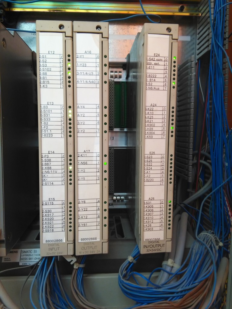 Выложите фото шкафа управления с установленным SIMATIC. Вытащите модуль памяти EPROM (оранжевый) из CPU и тоже покажите его нам.