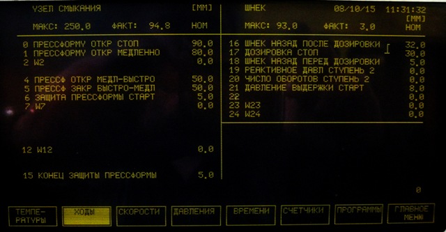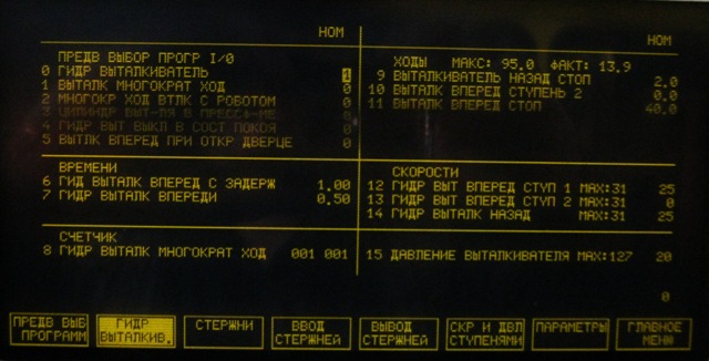 Хотя тоже иногда дают прикурить. Надысь случай был. Диагноз: проверить ходы и ввести корректуры (как здесь). Отрабатывает цикл и стопарик - корректуры слетели, насос работает, но все движения замедленные и запирания нет. И резисторы измерительные мыл, и перезапуск делал, пока не догадался на настройки параметров глянуть. Смотрю, размыкание медленное до 100 мм, и стоп формы тоже 100. Оператор подвинул плиту, чтоб, видишь ты, отливки в коробку сыпались. Сделал небольшую разницу и всё. А пол дня потерял.