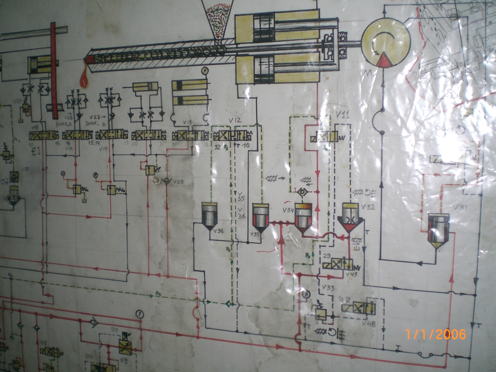 ТПА 780Х примерно 2002 года выпуска HAITIAN . Проблема в чем? Схем корявая не читабельная. Вроде как особо была не нужна. Машина отработала приличное время без нареканий. Теперь появилась лихорадка инерционность движений. Самопроизвольное раскрытие плит в момент впрыска и прочие. И потребовалась схема. Публикую что удалось нарисовать и просьба если у кого такие ТПА с нормальной схемой для корректировки и облегчения диагностических работ.