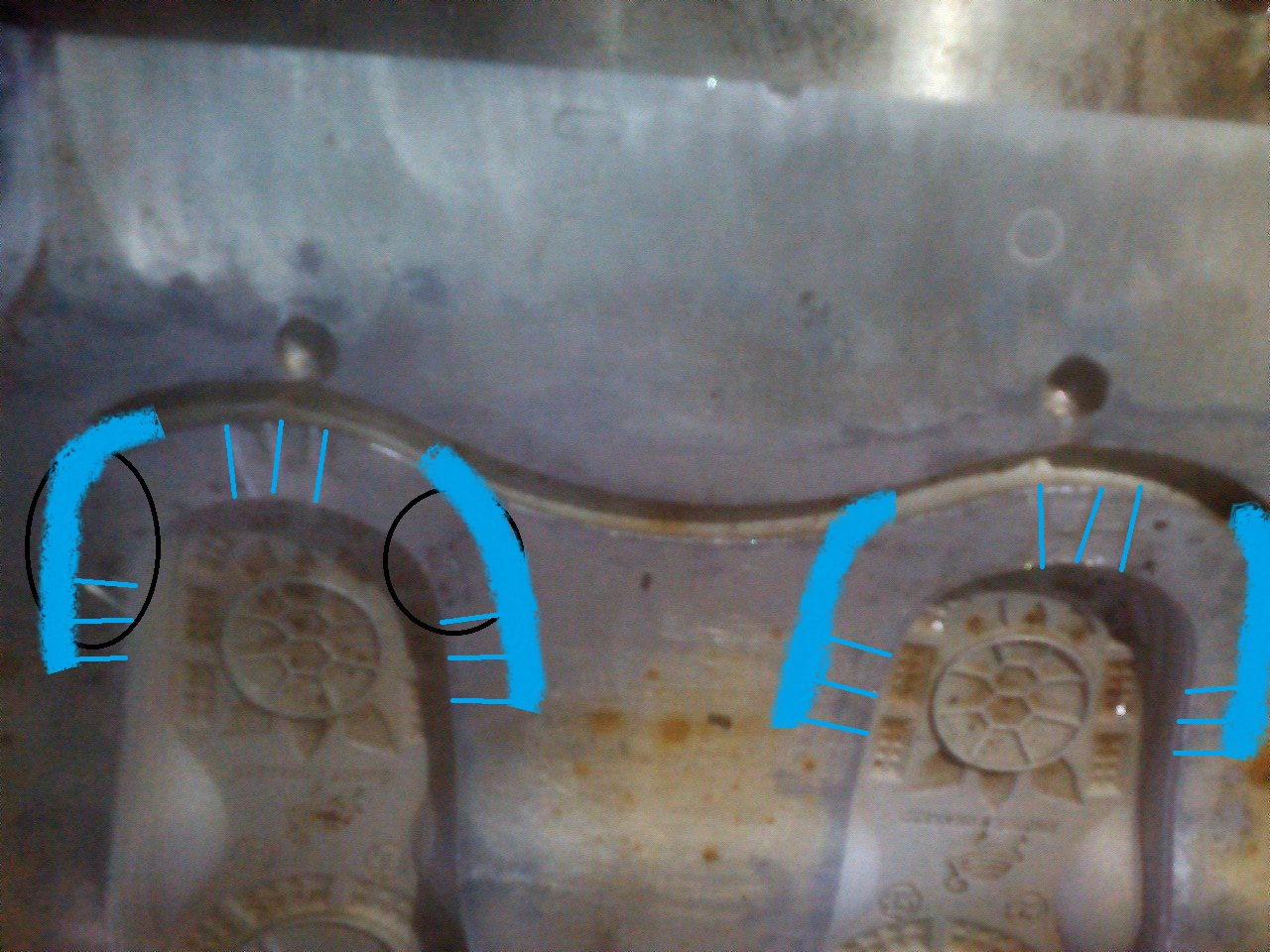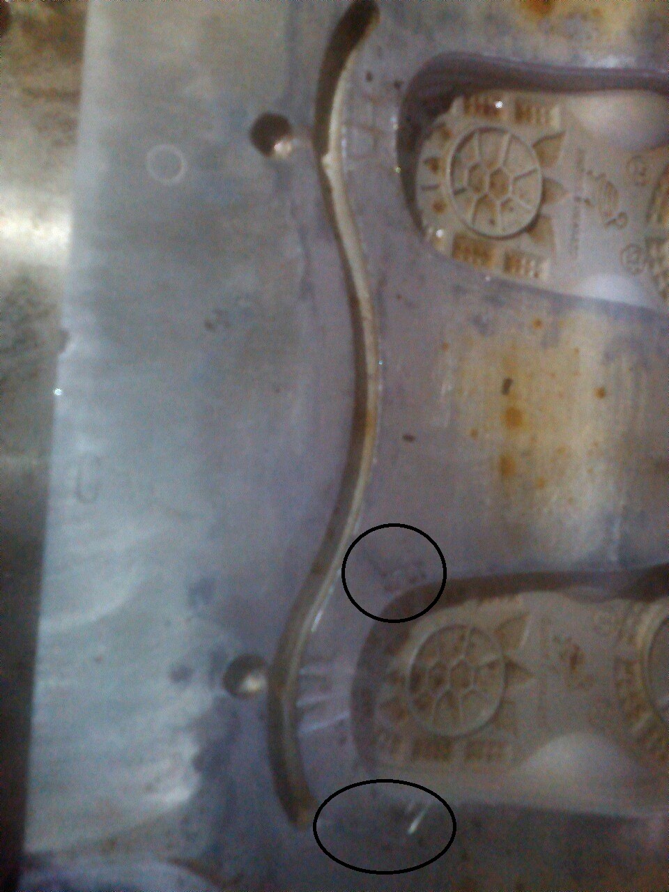 на месте кругов черных добавили канавки в к местам прогаров не помогло