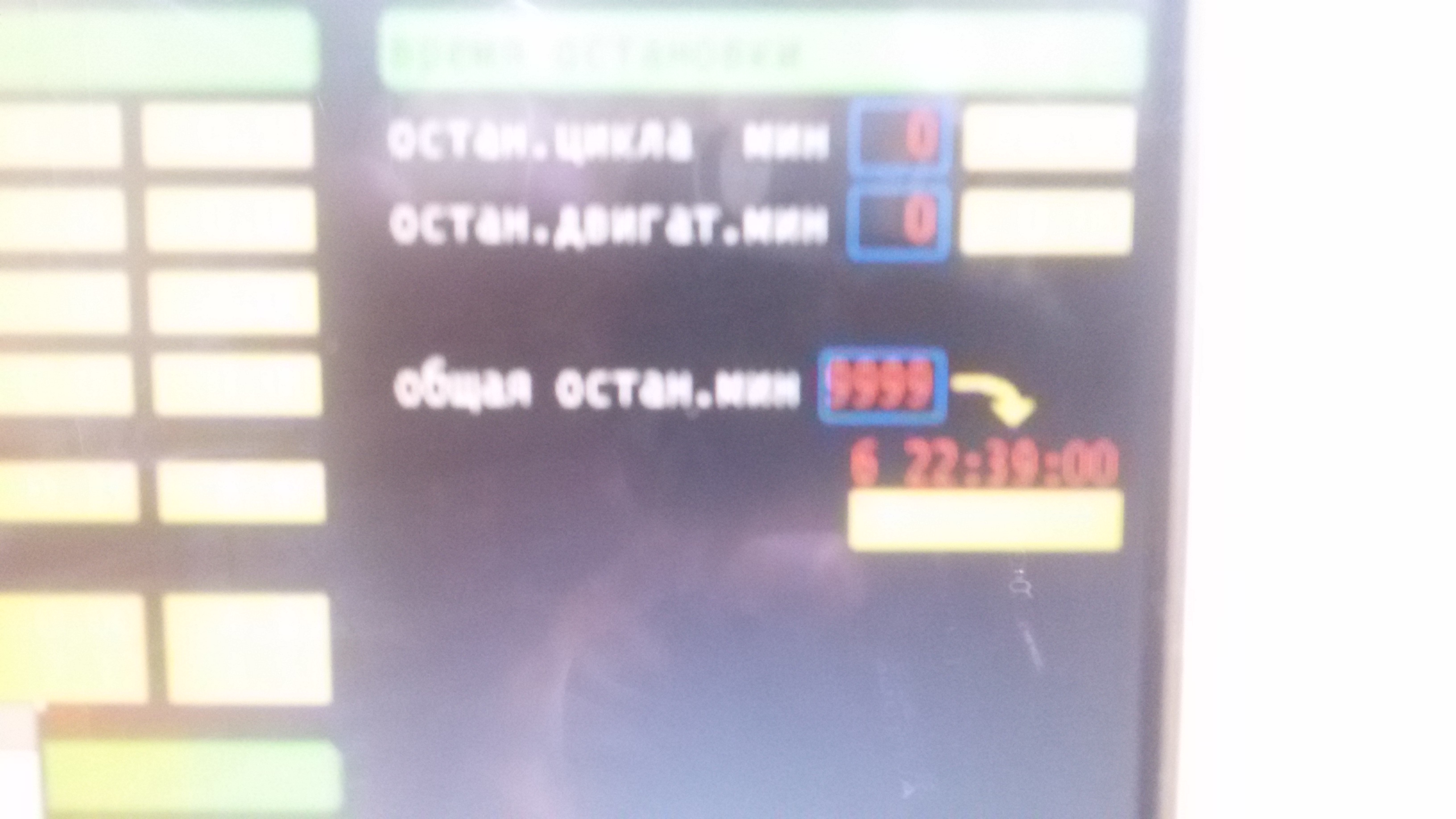 Извиняюсь. Не правильно выразился в 1ом посте. Меню контроля цикла (в моем случае - кнопка К7) В правом верхнем углу на фото видно параметр "общая остановк. Мин"