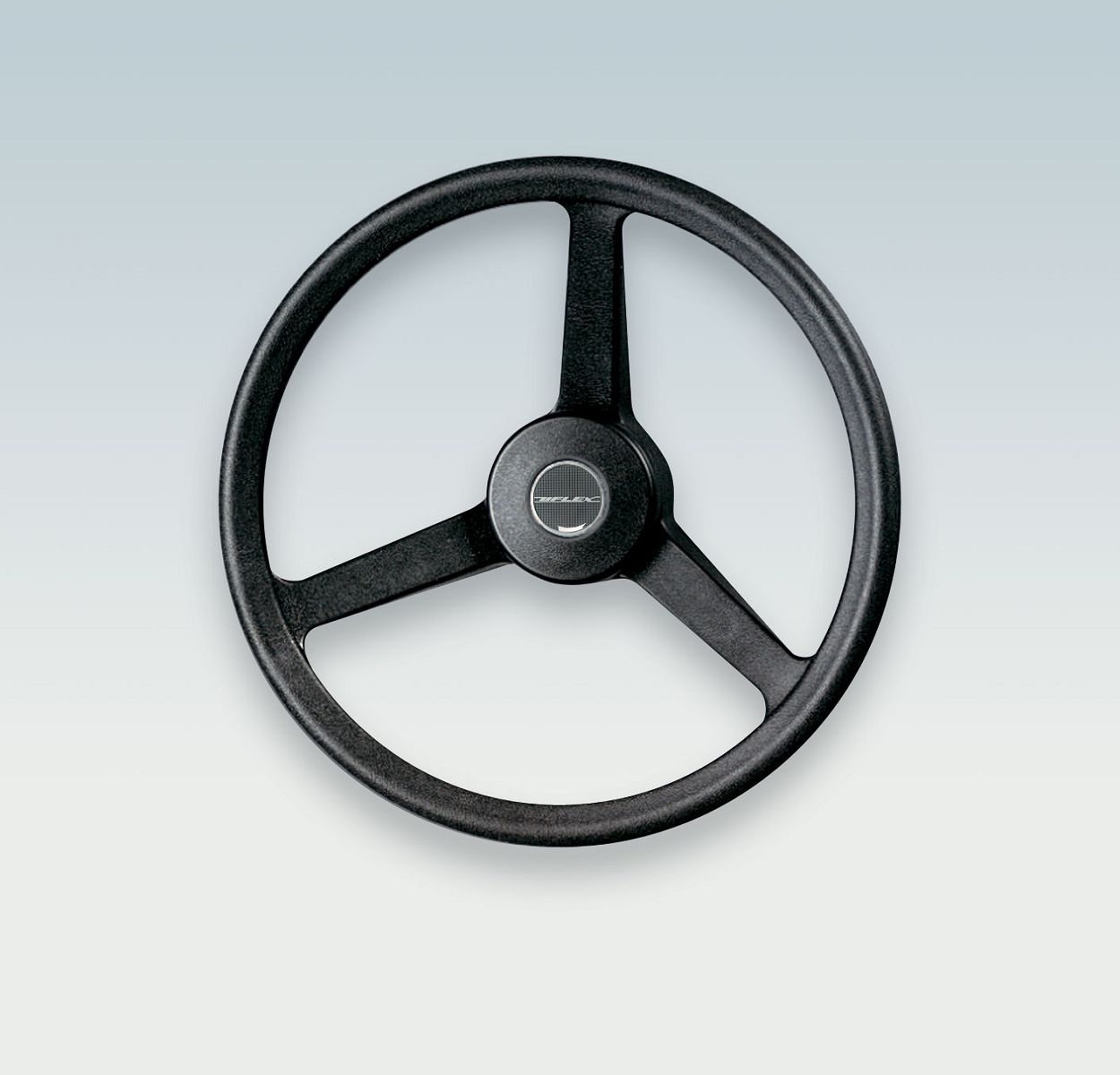 Всем привет! Заказчик принес руль, хочет форму. Диаметр 330 мм. В сечении диаметр окружности (толщина ободка) около 25 мм. Вес 450 г. По центру закладная деталь металлическая. Жесткий, но в тоже время эластичный и не скользкий (некая мягкость на ощупь присутствует). Горит хорошо, не коптит. Запах при горении как у полиэтилена. По требованиям не должен ломаться, только изгибаться, соображения безопасности. Скользить не должен. Есть ощущения что это холодное литье, полиуретан какой-нибудь. Литник на фото (одна точка впрыска, рядом срезы сделаны мной). Следы от толкателей с этой же стороны, но из-за закладной детали скорее всего, у неё коническое отверстие.