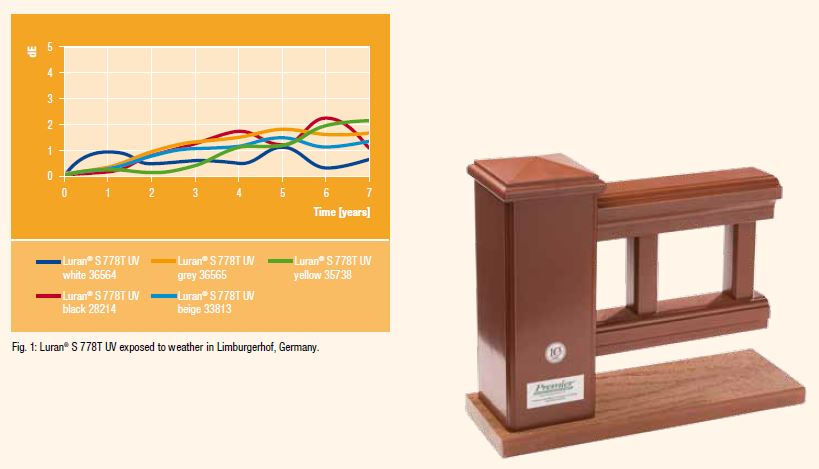 ПВХ для профильно-погонажных изделий – идеальный пластик в силу приличной УФ-стойкости, способности к модификации и цены. Однако при выходе за пределы привычных областей применения, свойств ПВХ бывает недостаточно. Основные проблемы – теплостойкость (о которой говорилось выше) и выгорание на солнце. Основные способы решения проблемы УФ-стойкости – подбор материала для соэкструзии. Мне известно о трех типах материалов, применяемых для нанесения УФ-стойкого верхнего слоя: 1)ПВХ с усиленным УФ-пакетом и специально подобранными пигментами; 2) ПММА и АН-МА сополимер; 3)АСА.
