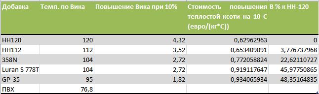 Стирольные пластики на базе САН (САН,АСМАН, АБС, АСА) отлично совмещаются в расплаве в ПВХ, как в массе, таки при соэкструзии. Этим фактом грех не воспользоваться для получения гибридов по свойствам и цене. До недавнего времени продукция отечественного автопрома использовала в отделке АБС/ПВХ пленку, которую для этих целей производил сызранский «Пластик». АБС (специальной марки!) в такой смеси исполнял роль модификатора ударной вязкости и теплостойкости одновременно. Есть ряд примеров применения ПВХ, обычно – теплостойкого, в качестве такого модификатора и в строительных материалах. В частности Novodur HH-112 применяется для повышения теплостойкости труб ПВХ. Могу предположить (точно не знаю, т.к. речь идет о Великобритании), что речь идет о канализации. Со временем мудрые маркетологи обнаружили, что нет большого смысла модифицировать теплостойкость ПВХ теплостойким АБСом, т.к. этот теплостойкий АБС сам модифицирован, в случае Стиролюшн –обычно АМСАНом. Этот АМСАН (Luran HH-120) можно более эффективно применять для повышения рабочей температуры ПВХ. Дело в том, что температура размягчения смеси материалов линейно зависит от температуры размягчения и дозировки теплостойкой добавки. В случае стандартного АБС температура размягчения составляет около 95 С, в случае АМСАН – 120 С. Температура размягчения ненаполненного ПВХ составляет порядка 77 С (зависит от К). При простой прикидке цен на различные стирольные пластики, которые формально применимы для модификации теплостойкости, теплостойкий АБС (на примере Novodur HH-112) и АМСАН (Luran HH-120) находятся примерно на одном уровне по цене, стандартный САН (Luran 358N) имеет промежуточное положение, а АСА (даже теплостойкая - Luran 778T) и стандартный АБС (на примере Terluran GP-35) обойдутся в плане повышения теплостойкости заметно дороже. Однако стоит отметить, что применение АБС и АСА для модификации имеет свои резоны: АБС на снижает (а может и повысить!) ударную вязкость, но не обладает УФ-стойкостью, а АСА, при меньшем эффекте в качестве модификатора ударной вязкости, обладает УФ-стойкостью. Впрочем, сыпать АСА в ПВХ – это почти кощунство