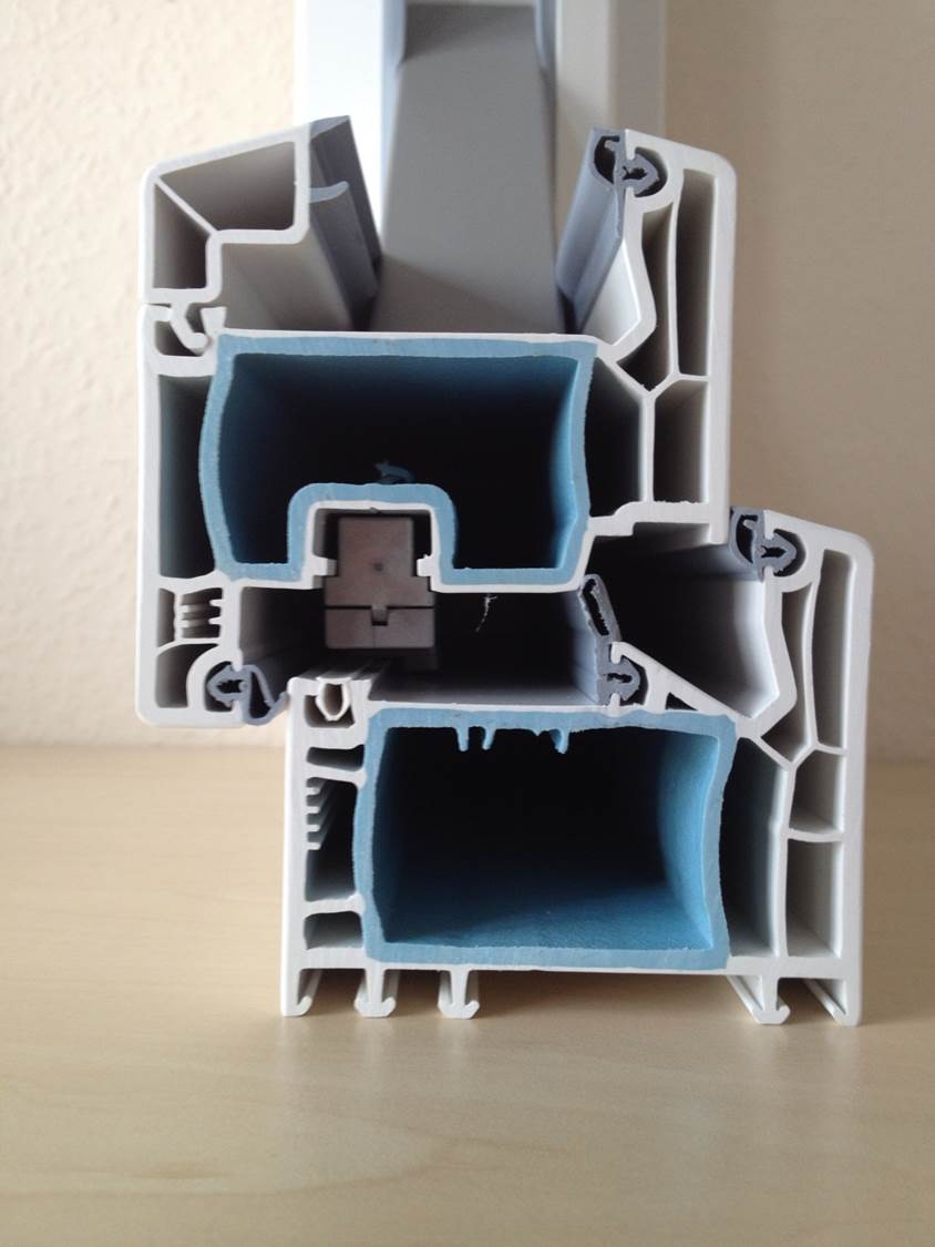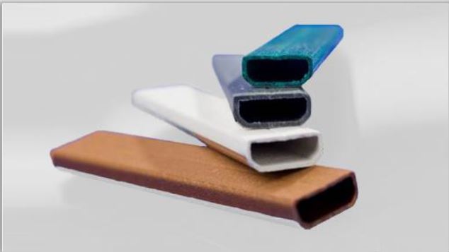 Основные марки, предлагаемые Стиролюшн для соэкструзии с ПВХ, представлены в таблице. Последняя важная тема в этом ряду – соэкструзия стеклонаполненного САН с ПВХ. В свое время с изменением требований к теплопроводности оконных профилей все крупнейшие производители оконных систем озаботились заменой стальных вставок на полимерные материалы. Пробовались ПБТ, стеклонаполненный ПВХ и САН с высоким стеклонаполнением. Я не берусь провести тщательное сравнение всех вариантов, однако, насколько мне известно, работают все. САН с 50% стекловолокна имеет модуль 16,5 Гпа, что как-бы довольно много для пластика. Как уже говорилось, САН имеет хорошую адгезию в расплаве к ПВХ, он не влияет на прочность сварки углов, видимо это – основное преимущество перед ПБТ. Дистаанционная планка для стеклопакетов - тоже довольно крупная область применения стеклонаполненного САН.