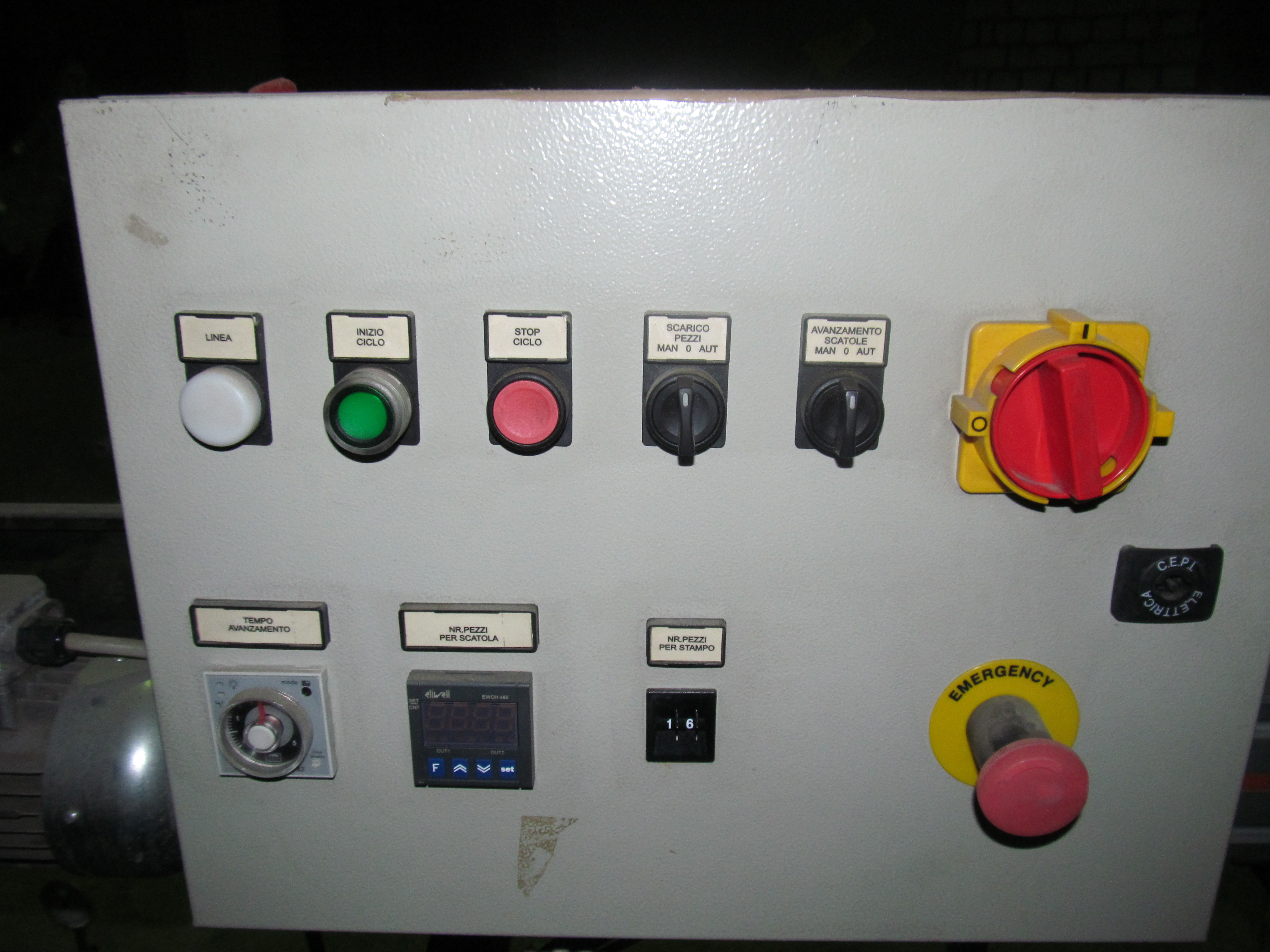 На пульте устанавливается количество гнезд и количество штук в коробке, из под ТПА постоянно подается крышка любым конвейером на верхний конвейер и он пересыпает ее в коробку, после достижения необходимого количества в коробке коробка меняется, на время смены коробки верхний конвейер отключается.