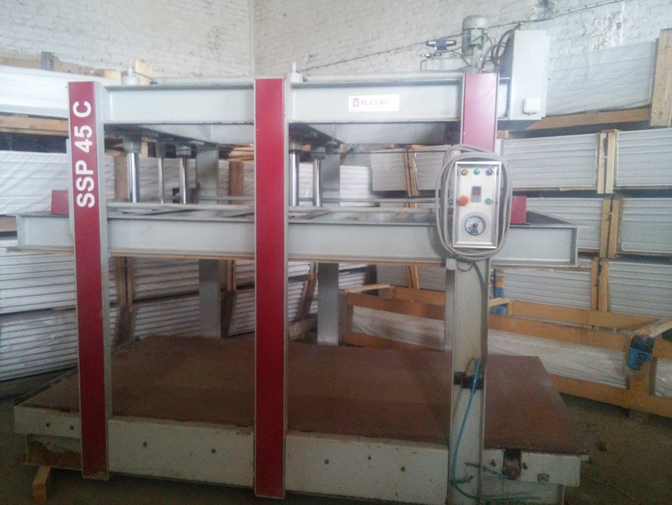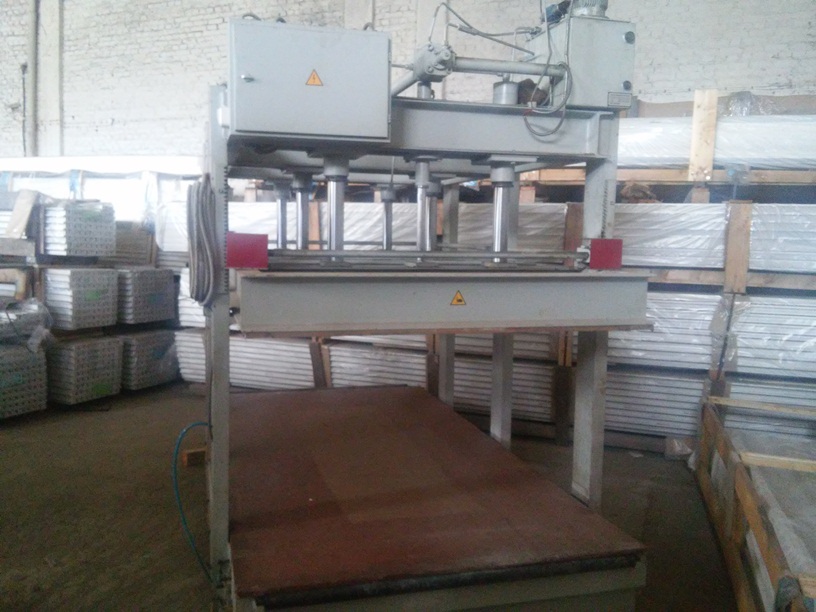 Имеется оборудование для производства сэндвич-панелей, состоящее из пресса, клеенаносящих валов и вспомогательных столов. Лист укладывается вручную, наполнитель прогоняется через валы с клеем, вода пульвером вручную. Снова лист. И так до 50 раз... Затем вся эта радость выдерживается под гидравлическим прессом. Это вкратце.