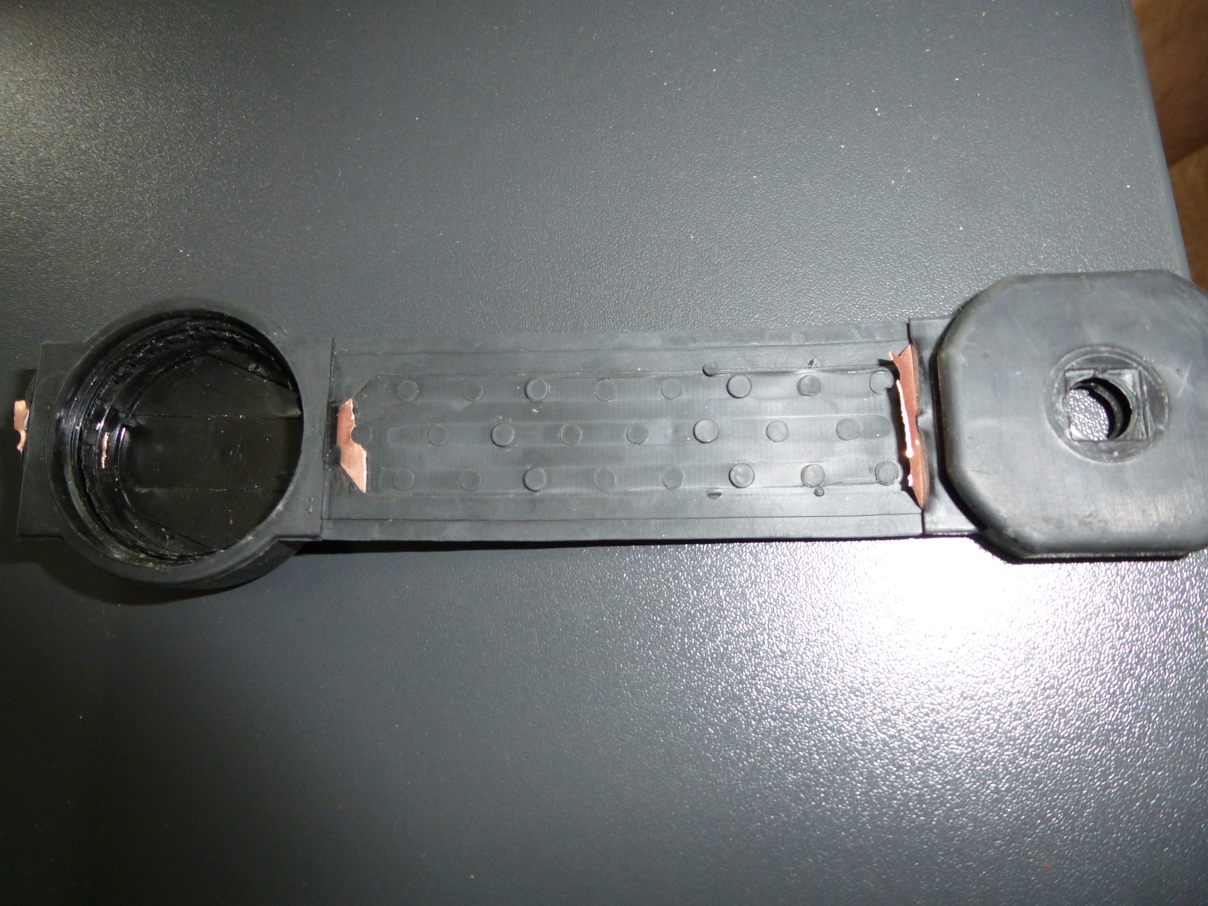 В итоге получается, что закладной элемент залит эластомером. Но после заливки второго этапа на детали проявляется дефект в месте спая. Фото прилагаю. Посоветуйте пути решения, пожалуйста.