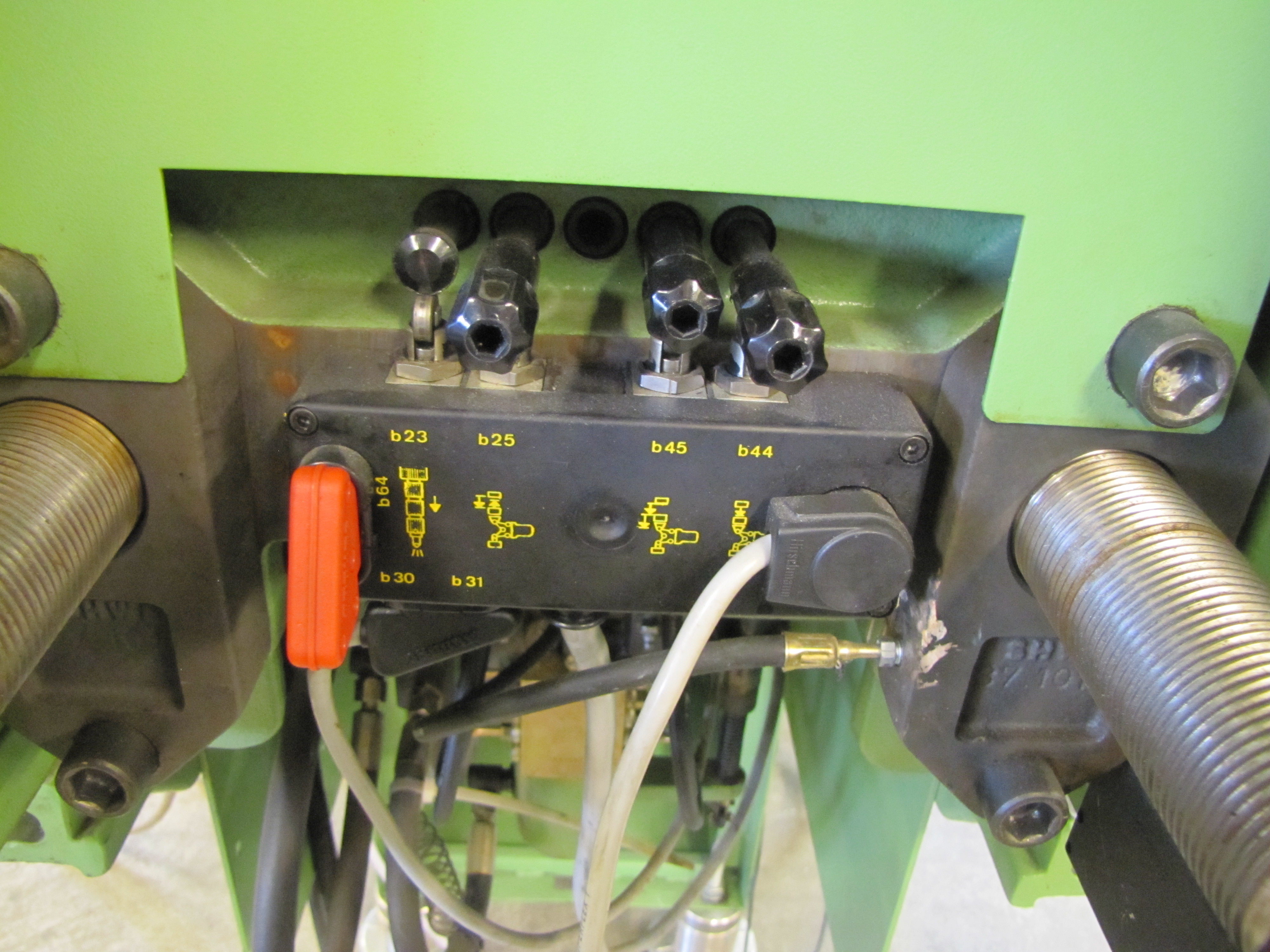 b23 не трогайте должен срабатывать только при выпрямленных рычагах, форма должна быть меньше максимального просвета плит ТПА, если больше то убавляйте высоту пакета формы. Регулировка высоты просвета между плитами ТПА производится здесь четырехгранным ключом, даже линейка установлена.