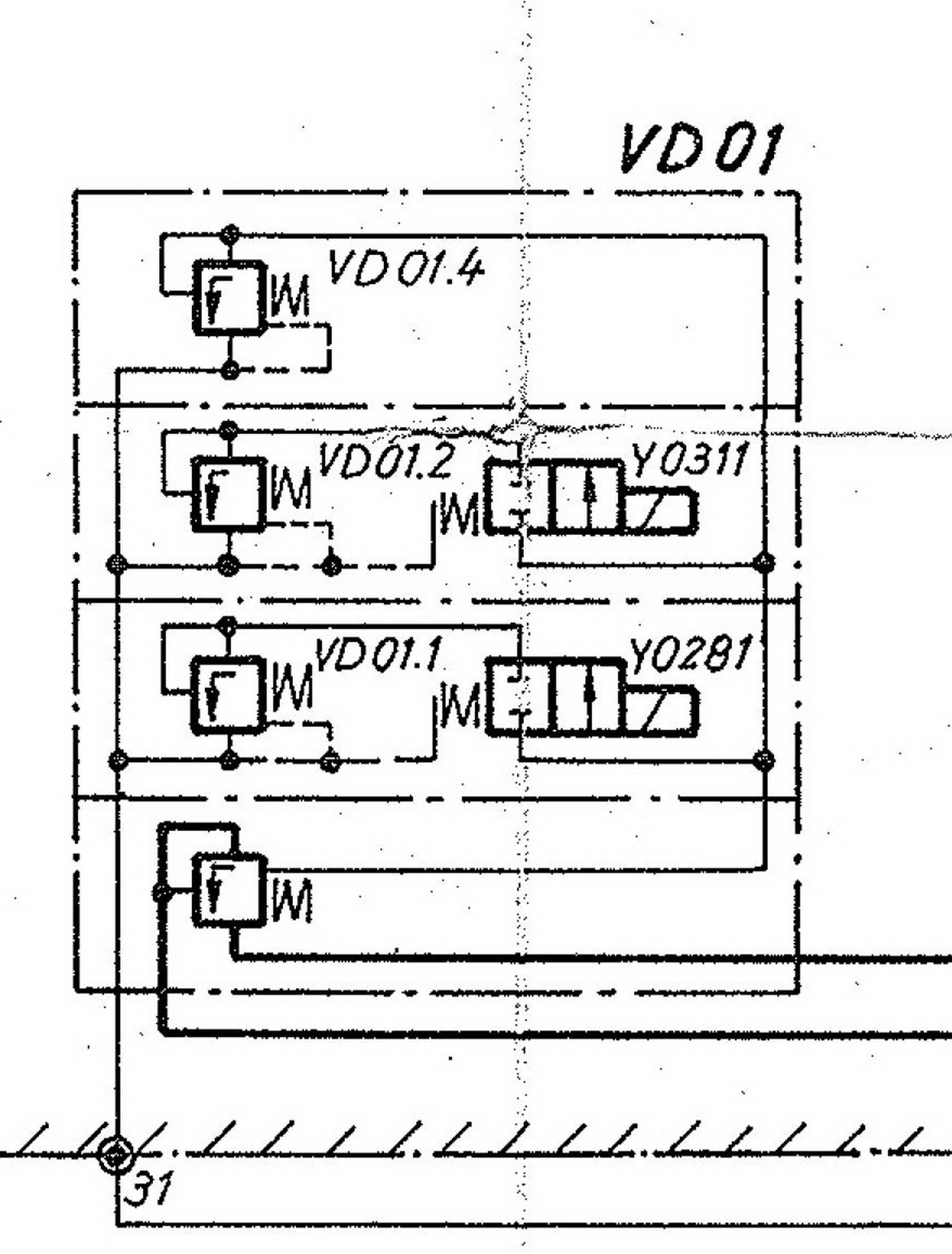 ! Крутим винт VD 01,2 и регулируем выдержку под давлением. У 281 понимать как У351. Прошу кого нибудь нажать кнопку впрыска в наладке. Включается У 31 и У 351 на манометре вижу давление впрыска основное, нажимаю рукой на электромагнит У 311 и одновременно кручу настройку под У311 и настраиваю сколько мне надо.Другой способ: Например после ремонта проверив все регулировки от нуля до предела убедившись что регулируется все. При нажатии на кнопку впрыска в наладке опять включается У31 и У351 настраиваю регулятор давления на У 281 он же У351 например на 100 кг. Затем переставляю разъем с У 351-го на У311 опять нажимаю кнопку впрыска - активируются У 31 и У351 который переставлен(разъем) на У 311 и спокойно выставляю например на 50 кг выдержку. Ставлю фишки на место. Потом в процессе литья дабавив время выдержки побольше, что бы успеть проконтролировать и подстроить -добавить или убавить и отследить что давление стабильно потом уже по факту литья регулируем по необходимости. Винт VD01,1 основной впрыск или первая ступень по давлению впрыска. VD01,4 Общее давление в системе.
