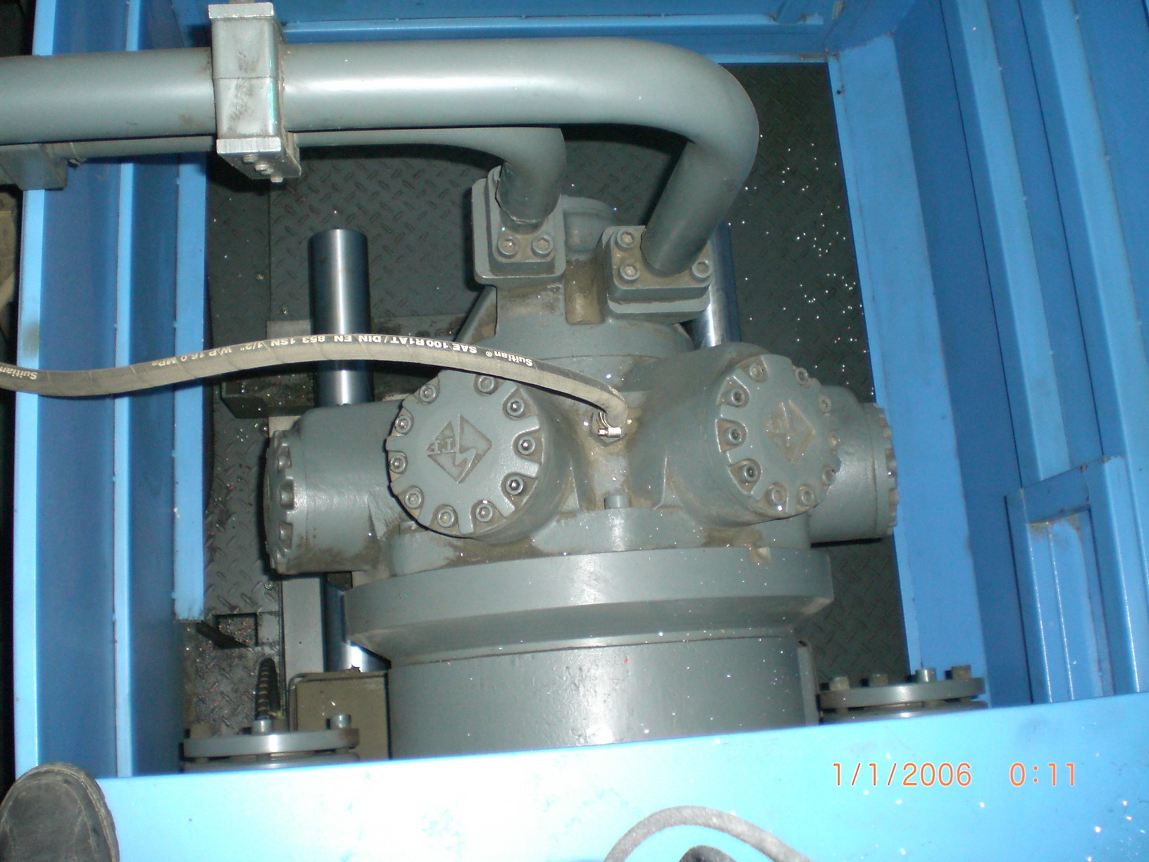 3) Во время работы мотора, центральный гидронасос "болтается" с большой амплитудой, в районе главного масляного бака слышен громкий, ненормальный шум. При любых других действиях (смыкание/размыкание формы, впрыск, декомпрессия) насос работает как и раньше, без посторонних шумов.
