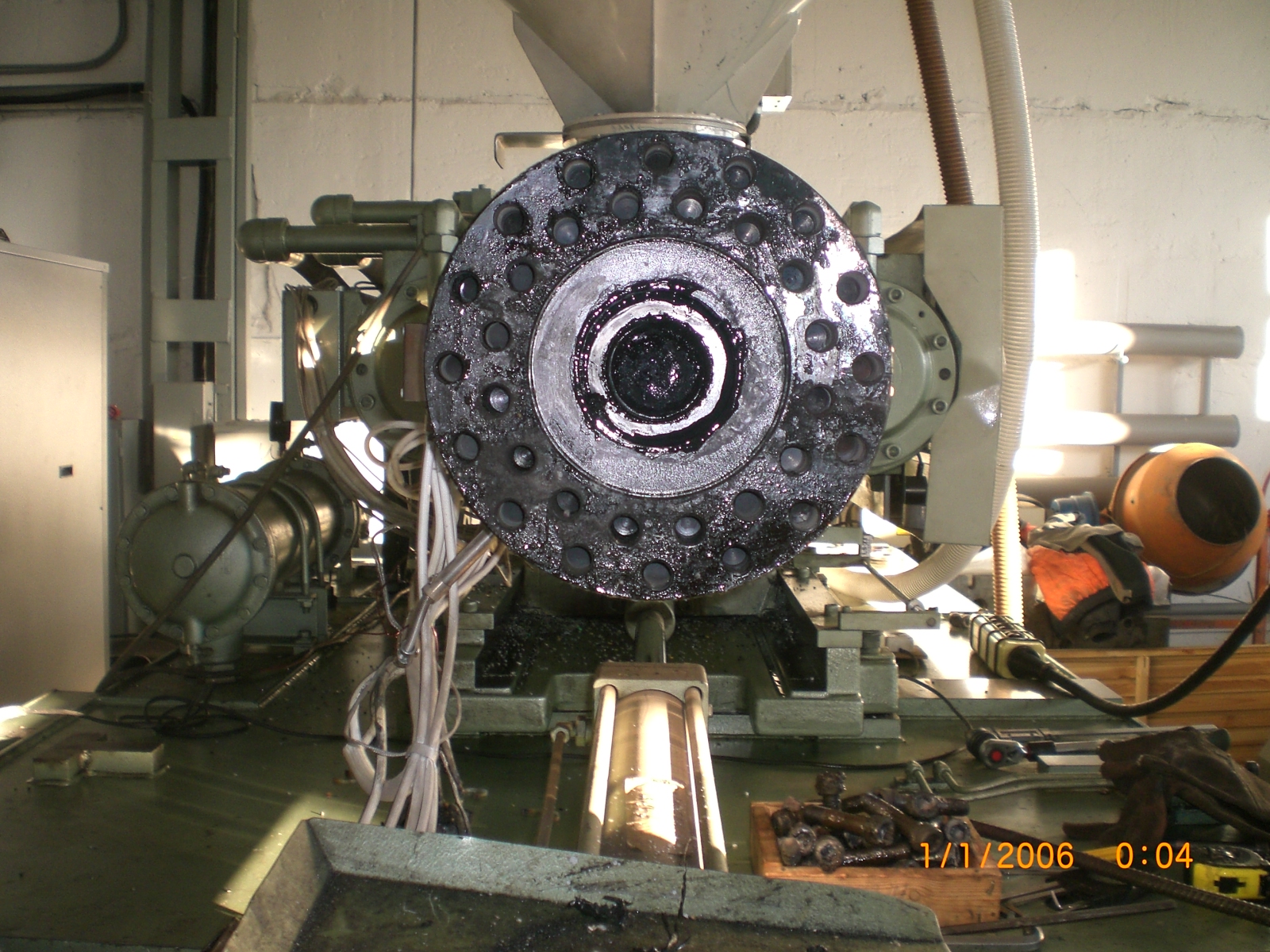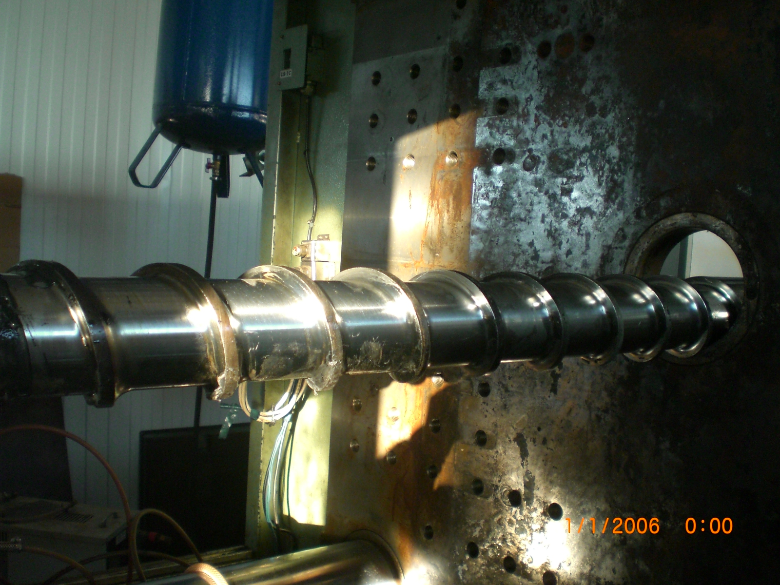 Шнек демонтировали. Запорное кольцо лопнуло. Износ шнека приличный . Карта износа и фото на днях. Если коротко суммарный зазор 3 мм плюс продольная трещина по запорному кольцу. Далее проверка натяжения колонн и параллельности плит. Это по претензии разжима формы при впрыске с одной стороны.