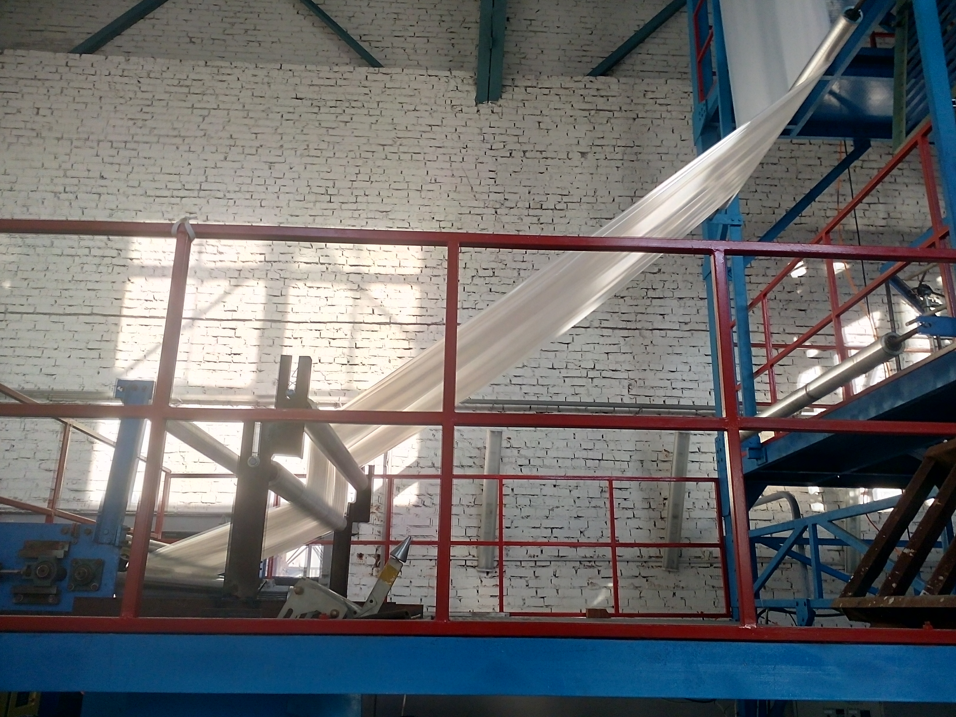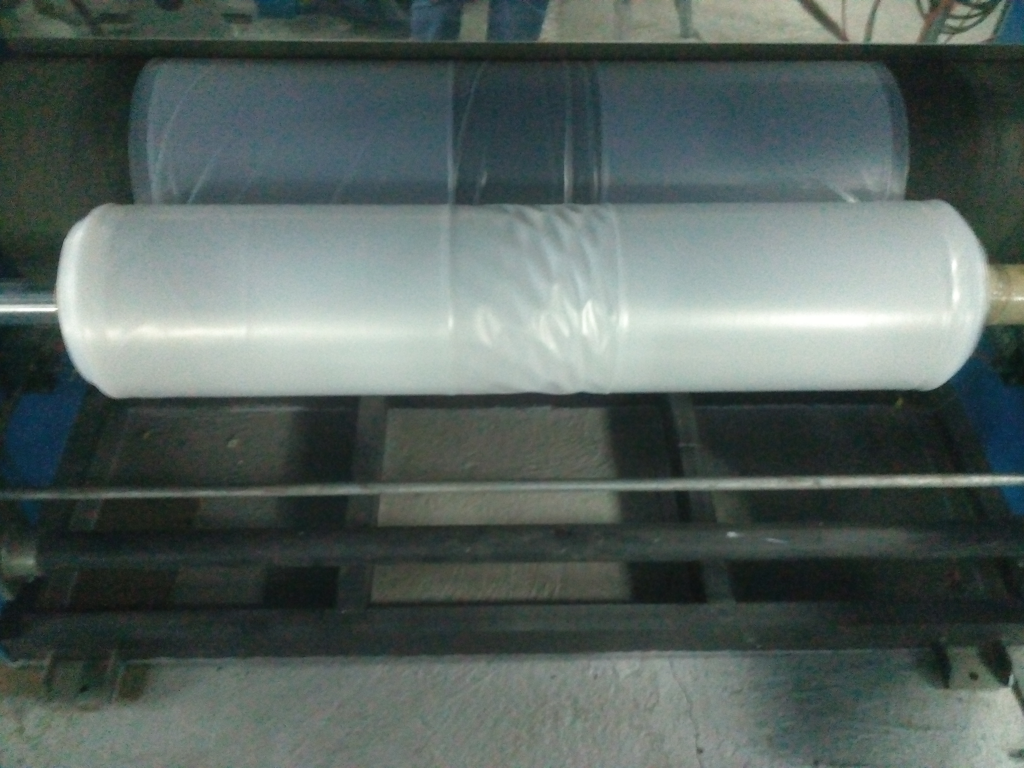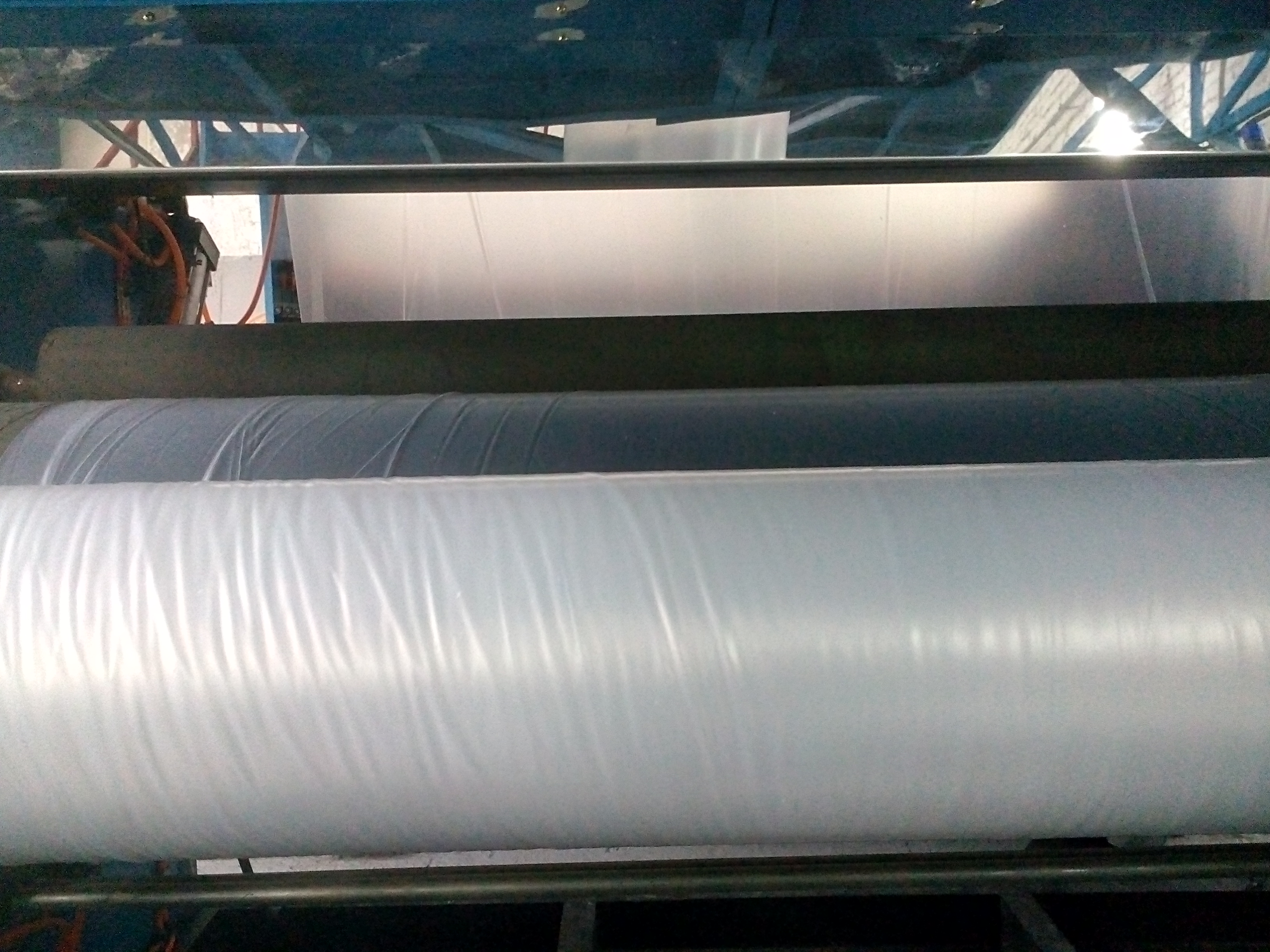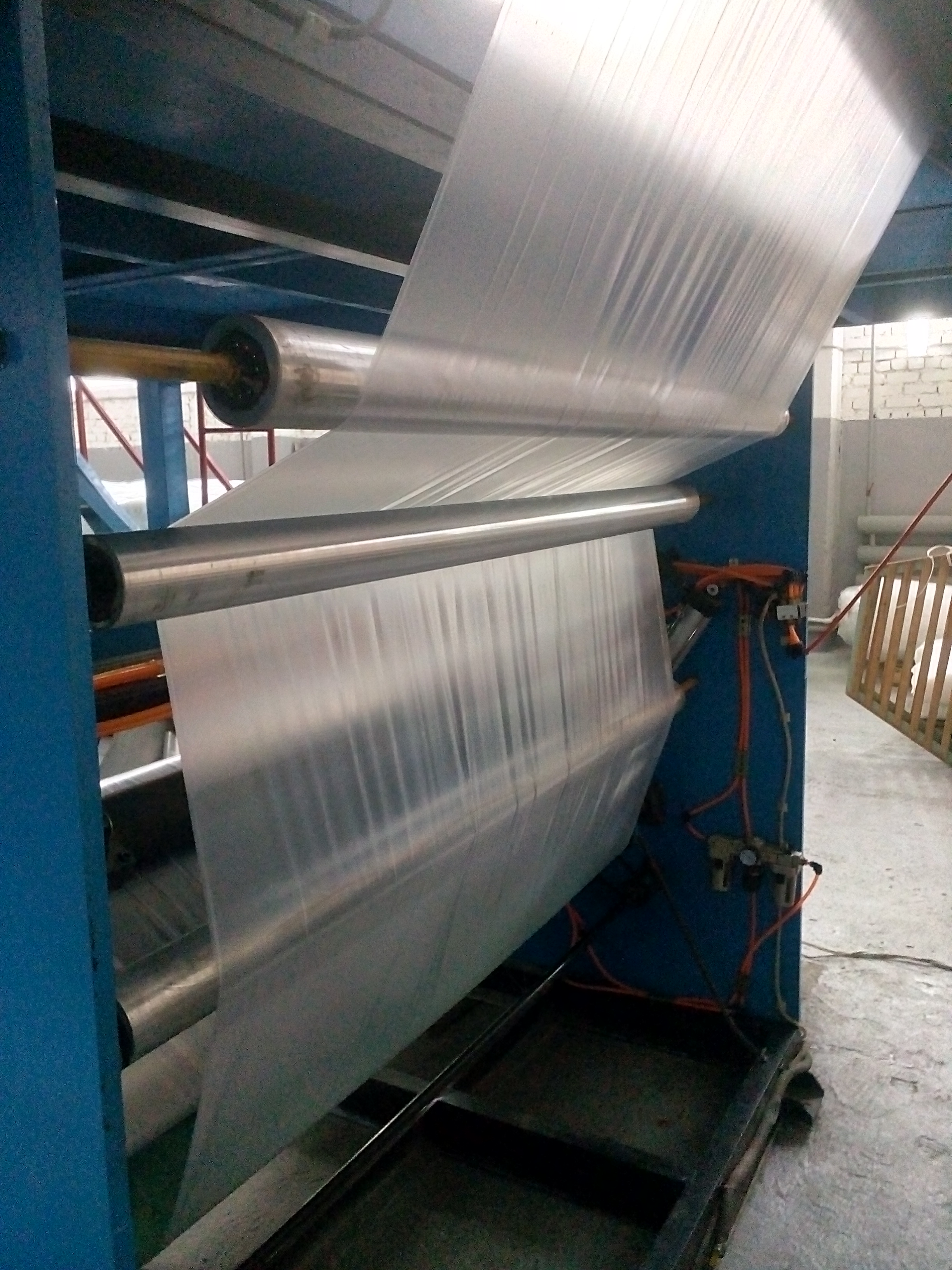 Спасибо, думаю нужно будет установить пневмораспределители на вытяжные и промежуточные валы. Вправо плёнка сместилась после того, как начали работать на вторую станцию намотки, а на первой станции плёнка шла ровно по центру приемника. Фото вытяжных валов прикрепляюлеха писал(а):Вытяжные валы . Если есть проблеммы с износом то давлением тут не поможешь ,но если отодвинуть от чулка диафрагму( стабилизирущую корзину) и чулок отклоняется от вертикали ...( это может быть и из за разнотолщинности,но проверяется легко включив вращение и повернув головку на 180*) и при этом на угол отклонения будет влиять давление сжатия в.валов нужно искать причину . Как мне показалось что 153 поприличнее получался чем 108 ... Возможно из за фальцев ( давление сжатия Вы ведь не меняли ) - износа резины ( как вариант ,если толщина пленок одинаковая ...Похоже у Вас несколько проблем и разбираться проще на 108 без фальцев .