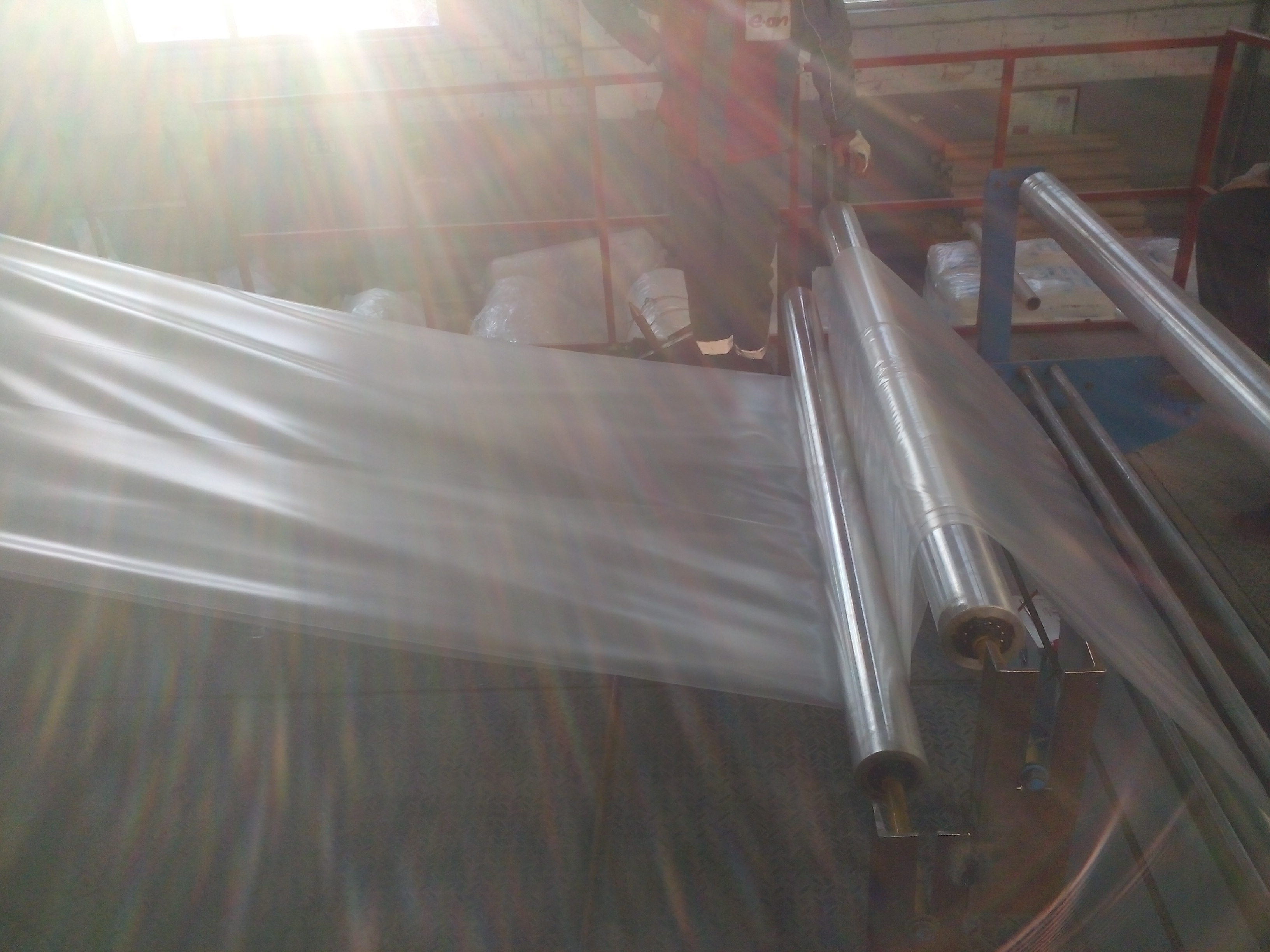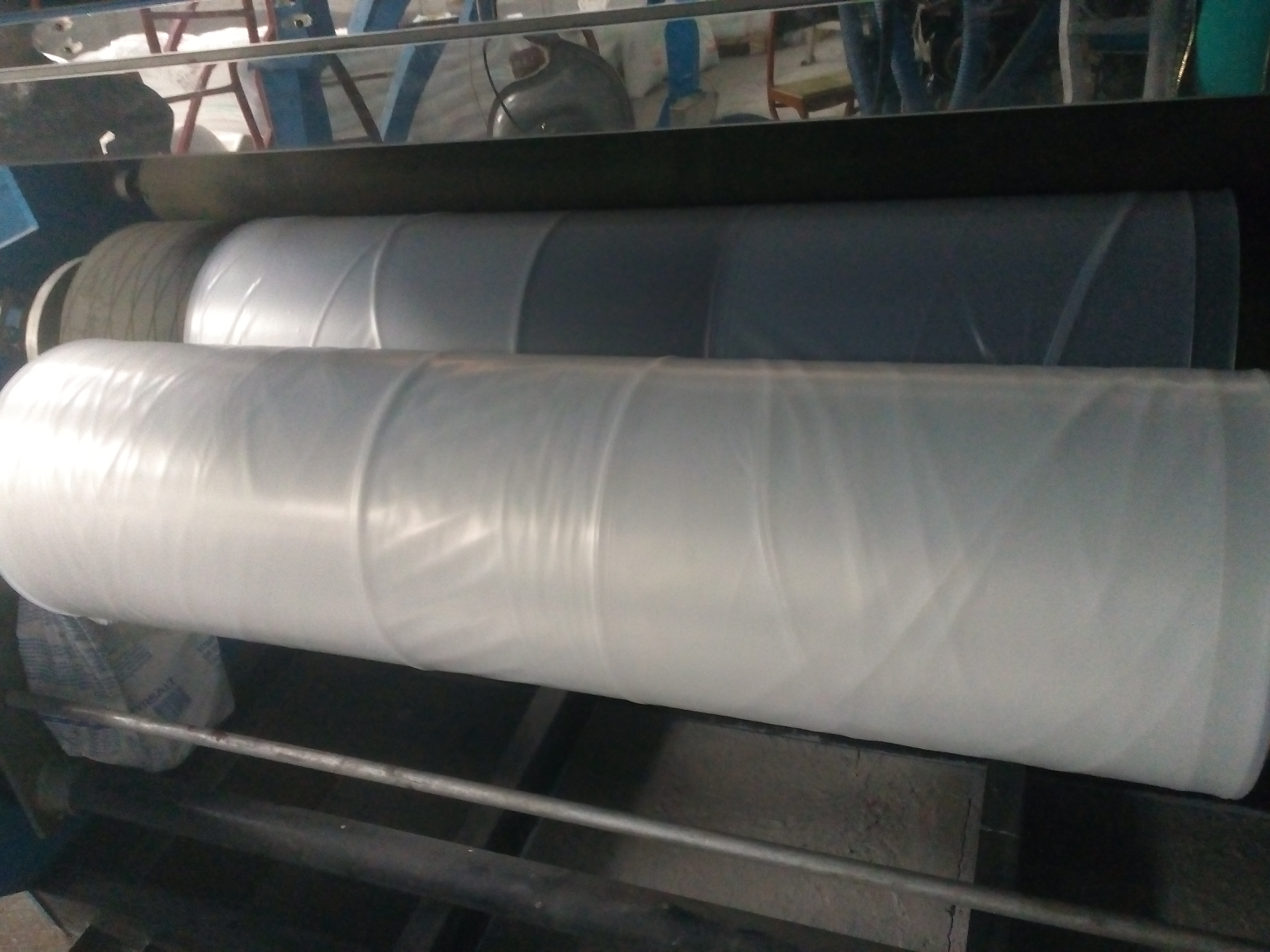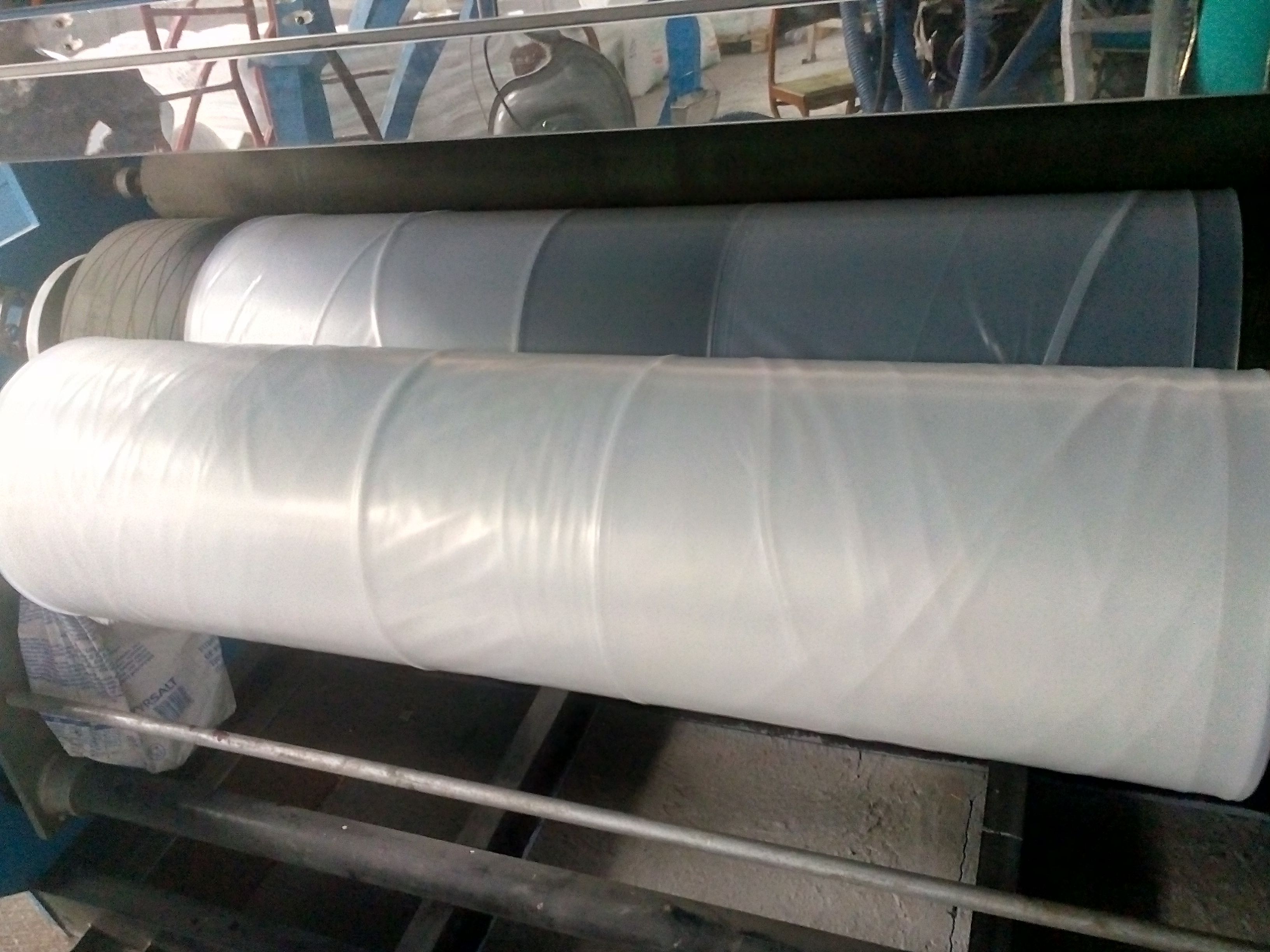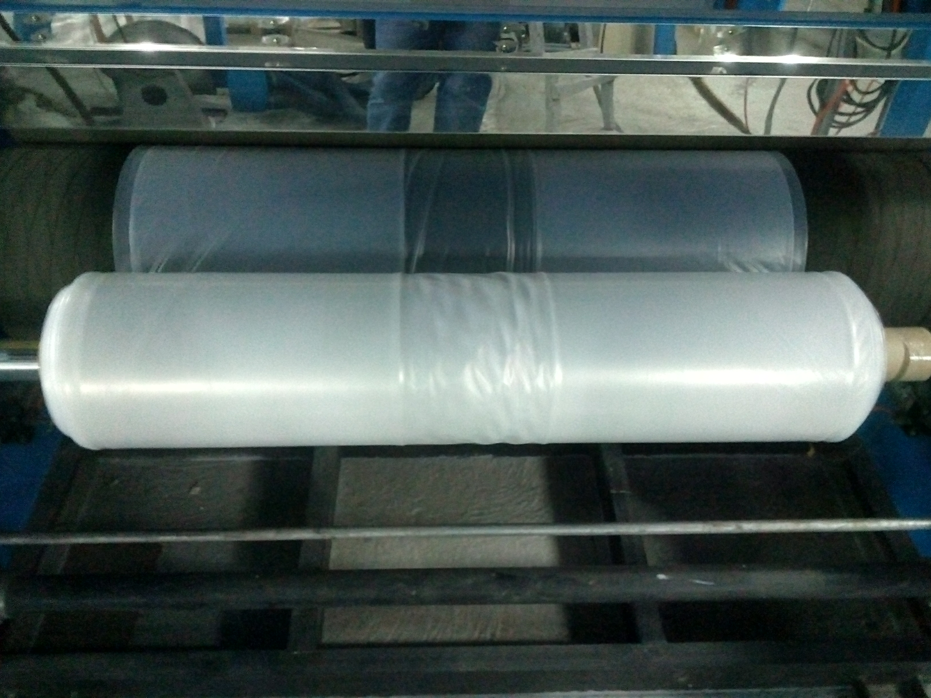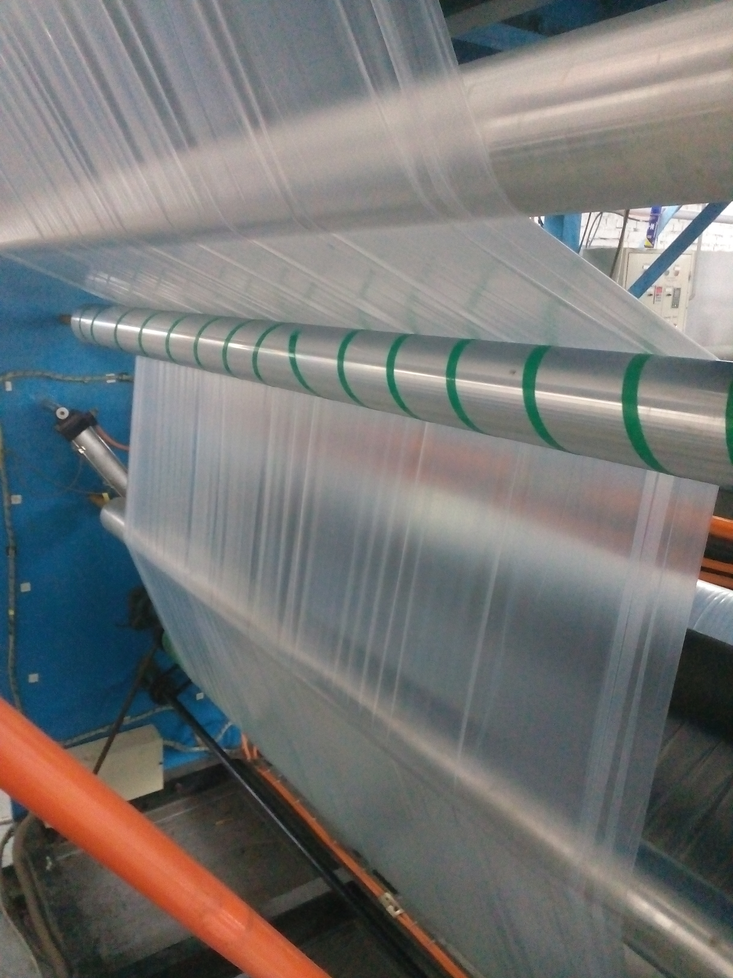 Доброго времени суток, уважаемые участники форума! Будьте добры, помогите со сложившейся проблемой. Пришел на новую работу, на которой есть линия по производству сотового полипропилена и пленочная линия Алеко-2100. С сотовой линией разобрался, а вот с пленочной возникла проблема. Пленка заминается при намотке на рулон. Пробовали заводить за "банан" и без него, установили дополнительные промежуточные ролики - ничего не помогает. Пленка (1310*2)+(520*4) толщиной 150 мкм, сырье ПВД153 +6148С (10%). Завтра будем пробовать делать рукавную пленку шириной 1500 мм, может на ней таких видимых проблем не будет...