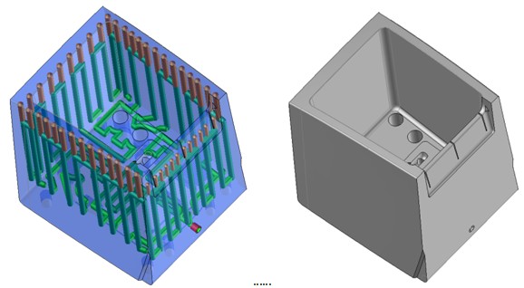 За счёт очень точного расположения охлаждающих каналов в максимально возможном приближении к формообразующей поверхности, и размещения термостабилизирующих элементов в зонах с такой необходимостью достигаются оптимальные термические характеристики пресс-формы.