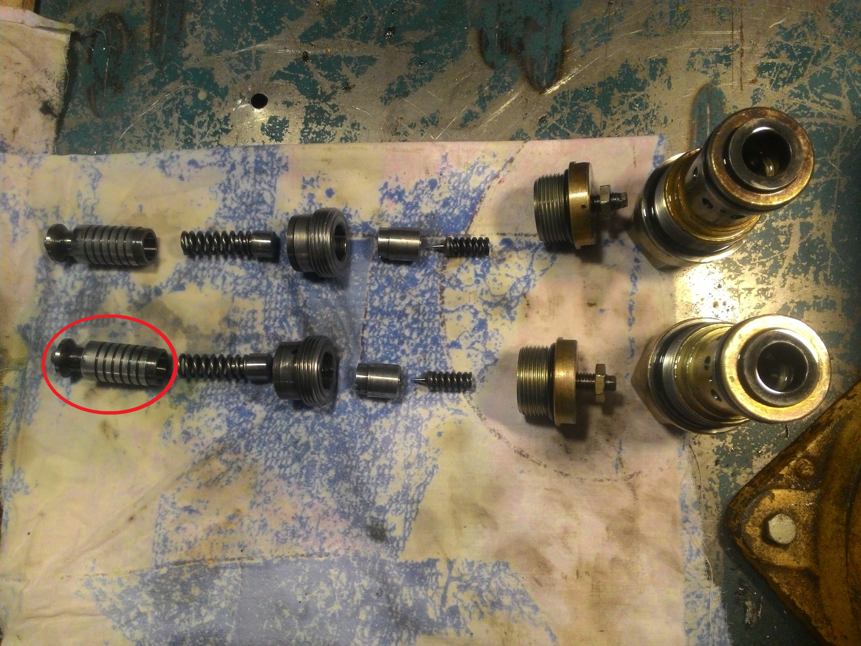 Внутри поршня шайба с отверстием мелкая пружинка и шарик. Обычно стукнешь и все выпадает или шильцем поправить шайбочку и все высыпается. Если сетка чистая а шайбочка на месте. Практика показывает что без мелкой пружинки и мелкого шаричька клапан работает без нареканий. Сеточка при надобности выкручивается ключ м 10. Конструкция вашего клапана немного отличается, но сути это не меняет. Если