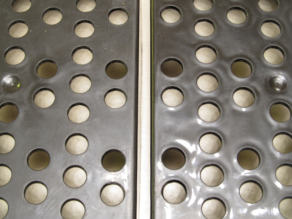 Разжал, скорость на минимум, выдержка под давлением 3 сек. Утяжины ушли, геометрия несколько лучше, но начало продавливать толкателями стенки.Мулланур писал(а):Разжать форму и сильно убавить скорость.Если не поможет то добавлять концентрат мела как Максим42 с Максимом Викторовичем предлагали.