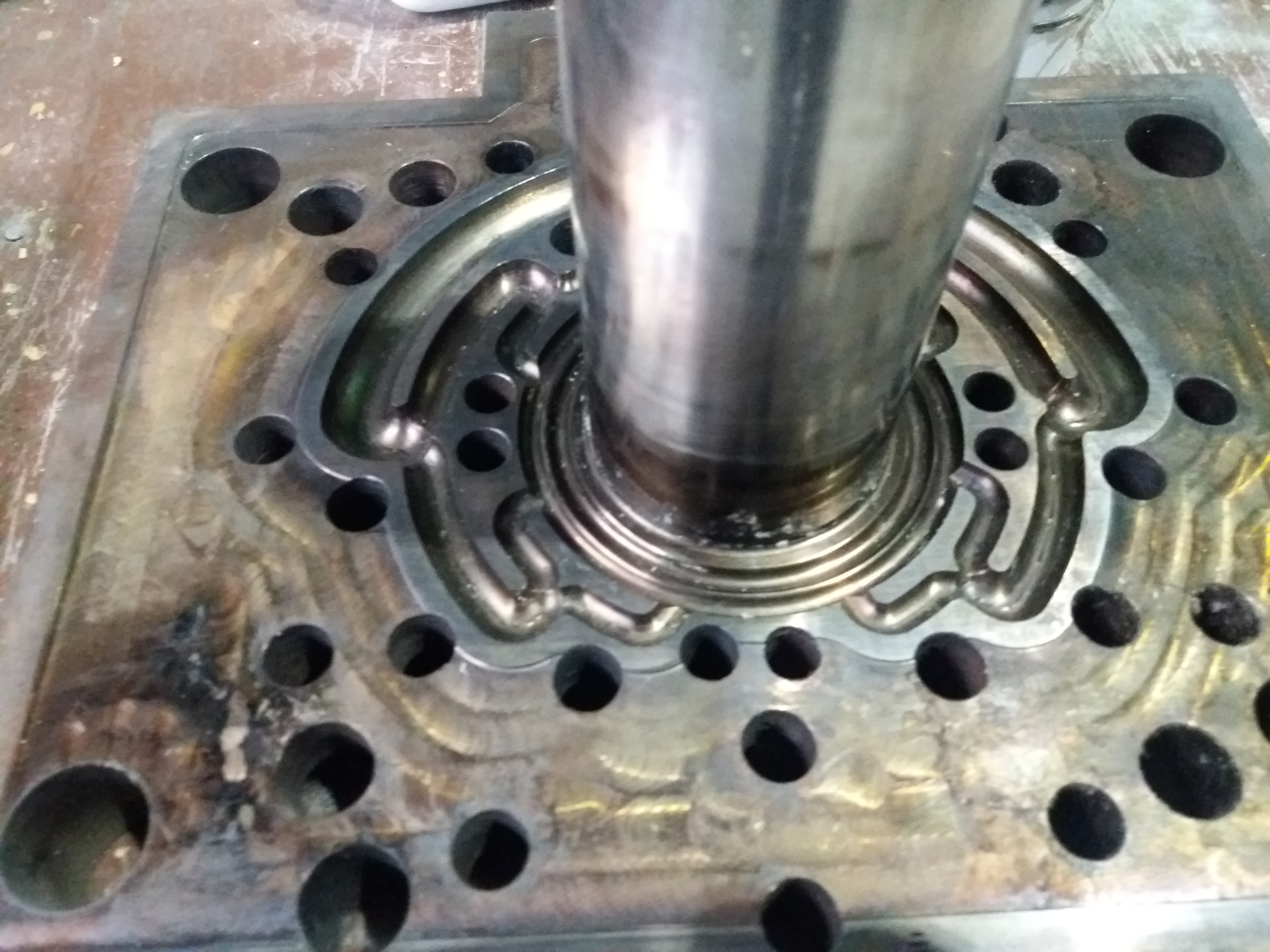 На изделии восемь зон с утолщением стенки. Площадь сечения входа с экструдера меньше чем на кольце образующей щель образовании чулка примерно на 30%.