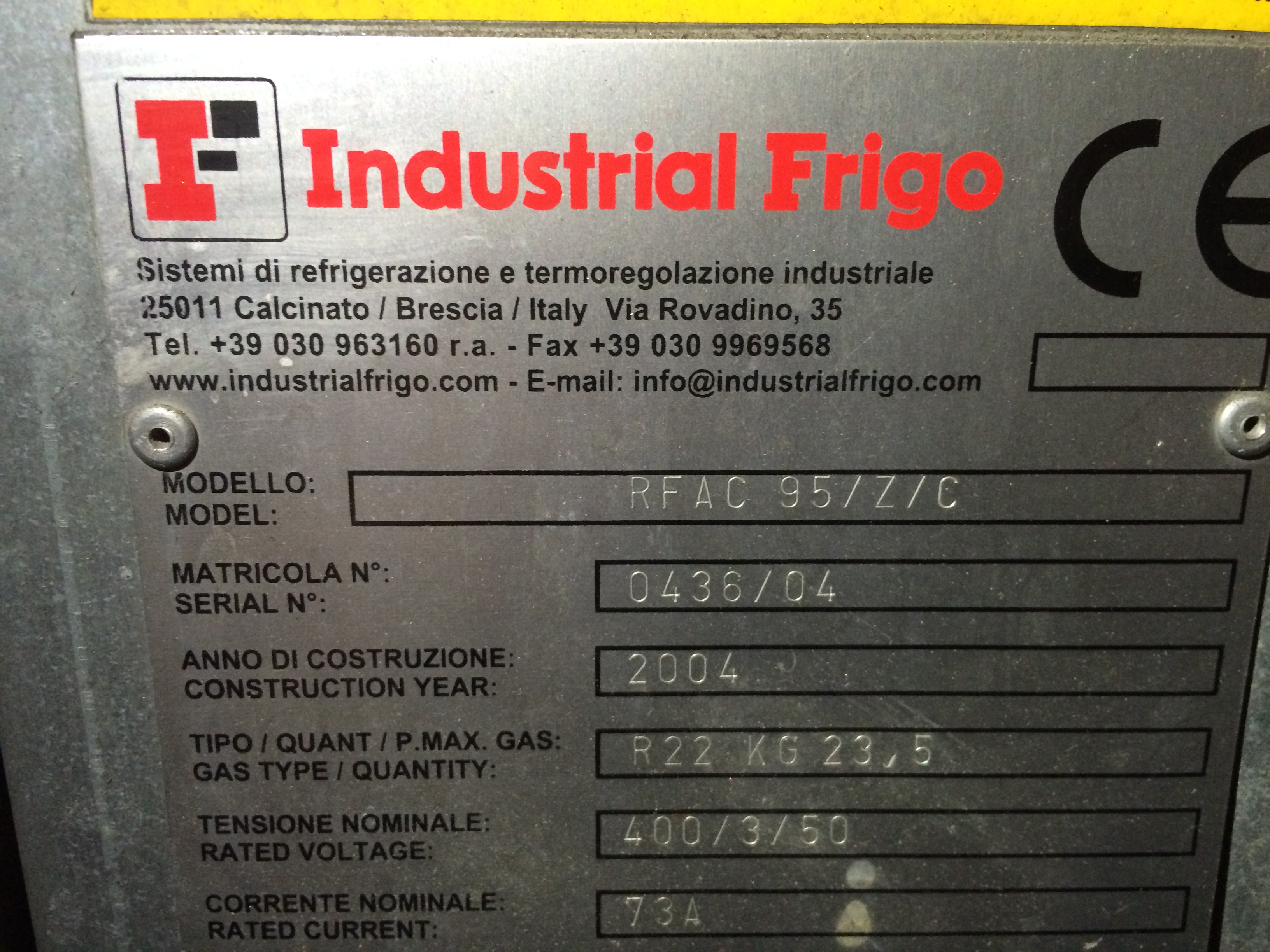 Продаем холодильник промышленный Industrial Frigo industrial frigo RFAC 95/Z/C год 2004. Породистый итальянец (не Китай) :)) Холодопроизводительность 95 кВт. Температура от -10 до +25. На фото есть шильдик с хар-ками. Покажем в работе - холодильник подключен!