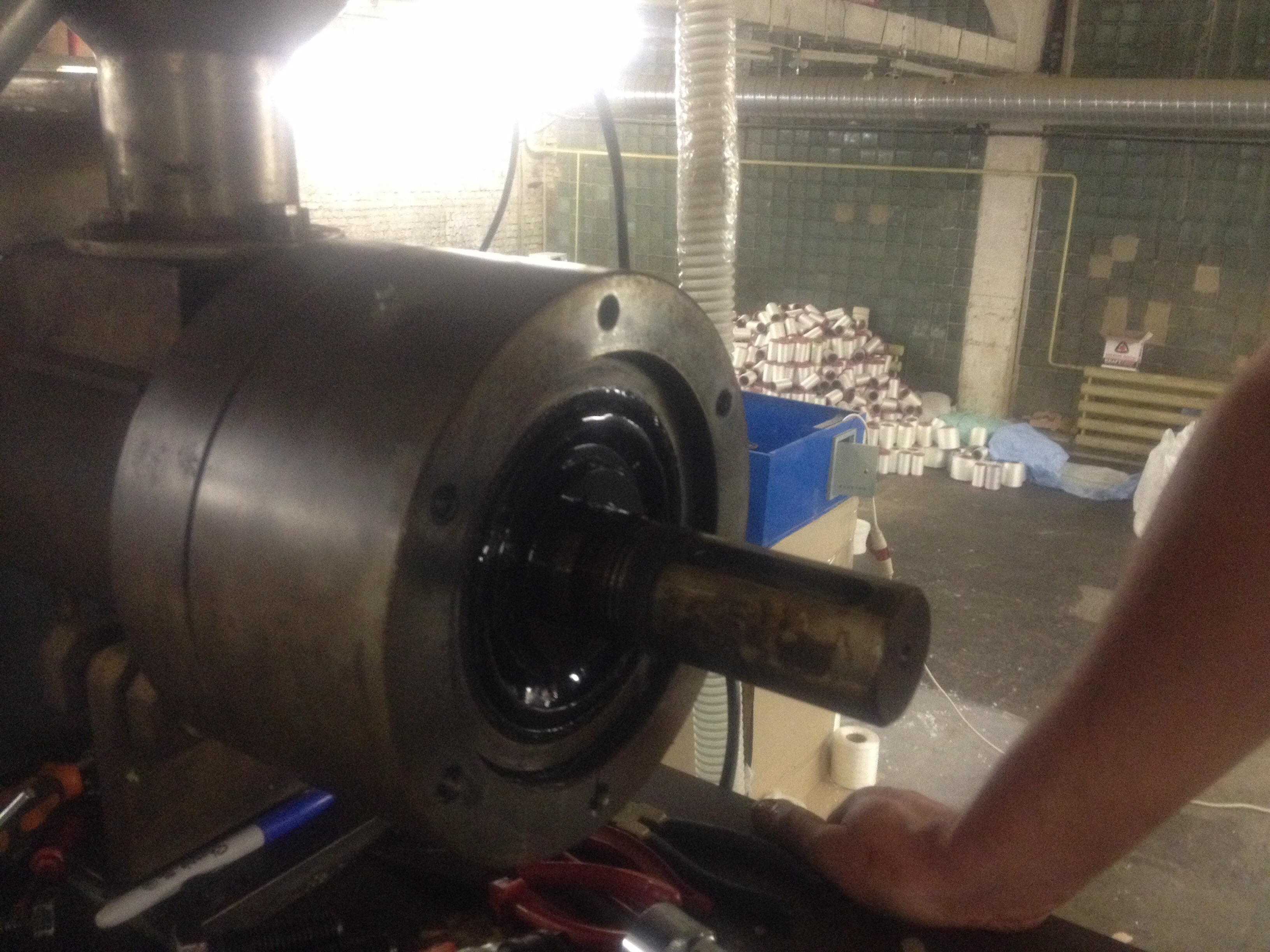 Отсутствует центровка валов. Центровку валов осуществляли смещением муфты вдоль шнека на редуктор и обратно. Отсутствие соосности вылилось бы в клин и не дало ее сдвинуть. Хотя это неправильный подход других вариантов не было.