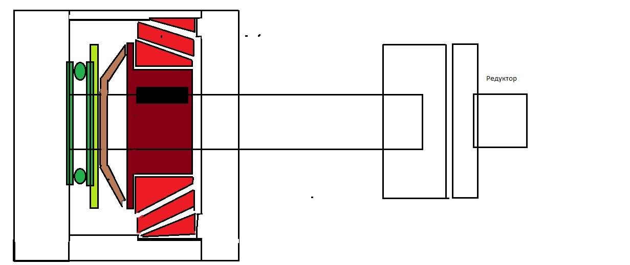 Конический подшипник большой красного цвета. Упорный зеленого. Справа муфта ее не хватило таланта изобразить. Черный прямоугольник - это шпонка на шнеке. Бордовый - не знаю как деталь называется(садится на шпонку), на ней сидит и сам подшипник.