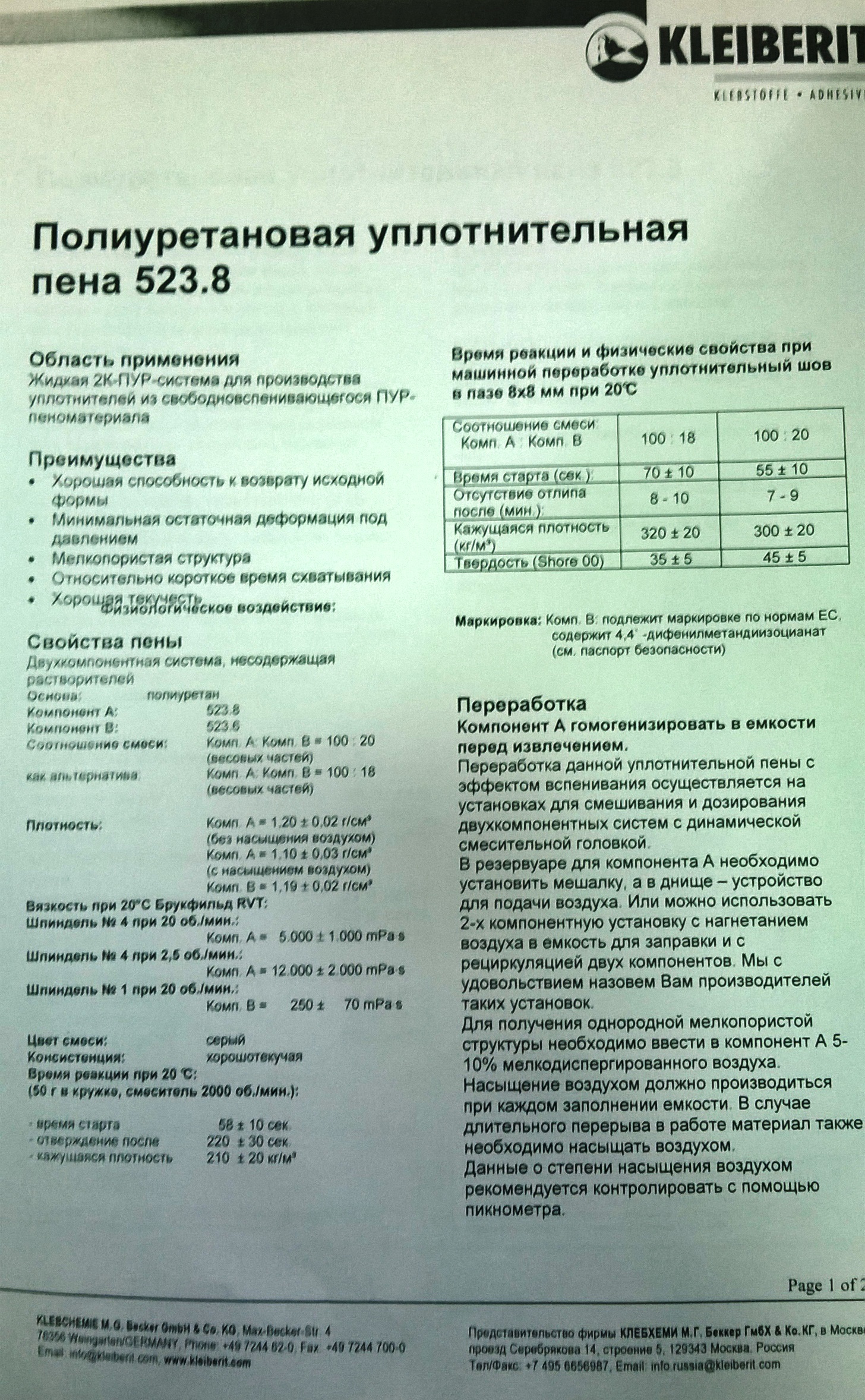 Соотношение полиол белый: полиол окрашенный (серый) = 7:1, соотношение полиол: изоцианат = 5:1