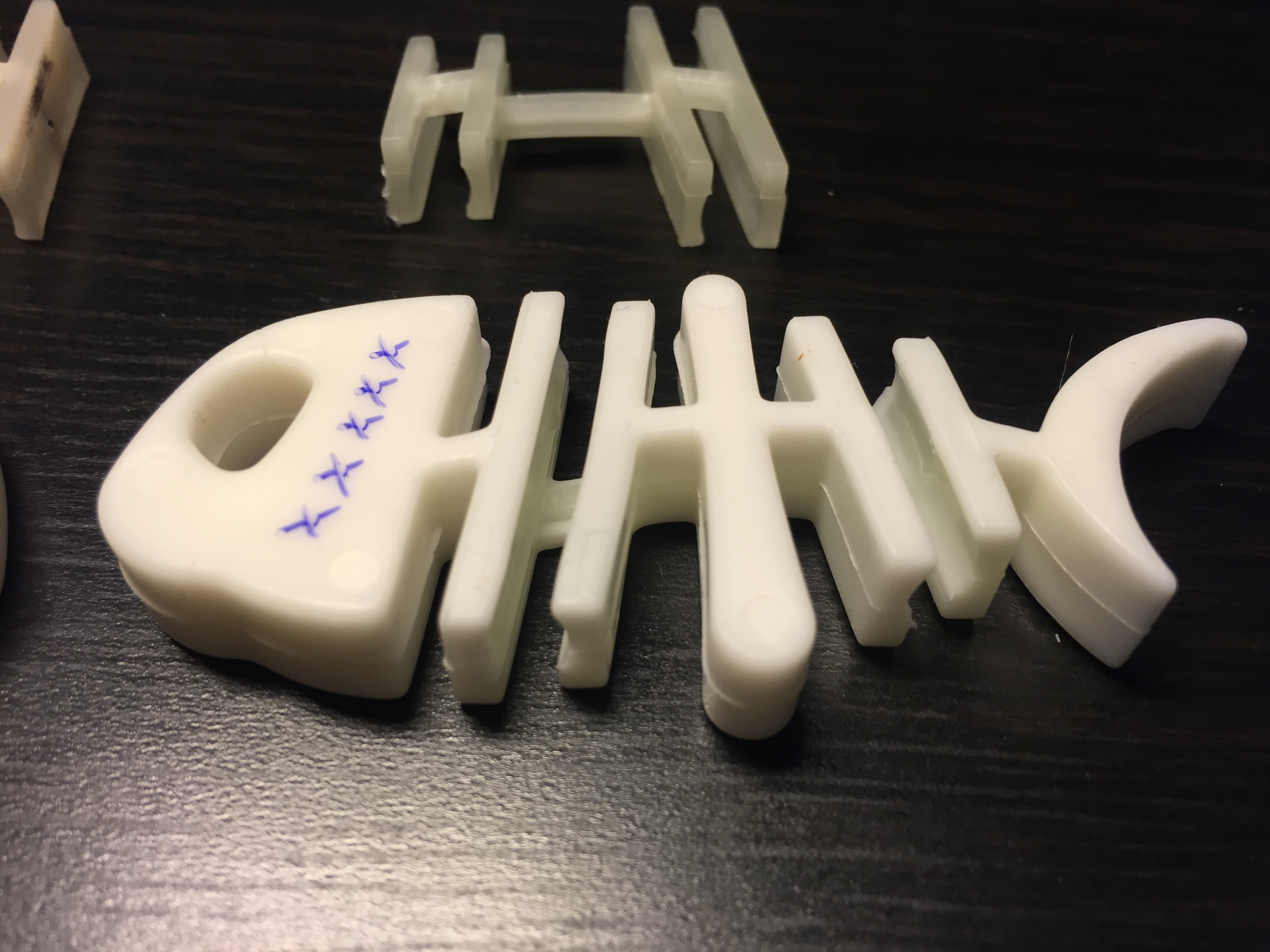 В Китае внутренняя часть делалась из Поламида и потом эта внутренняя часть заливалась поверх Силиконом для формирования самой рыбки. Тогда получилось идеальное сочетание тактильных качеств силикона и жёсткости ПА.