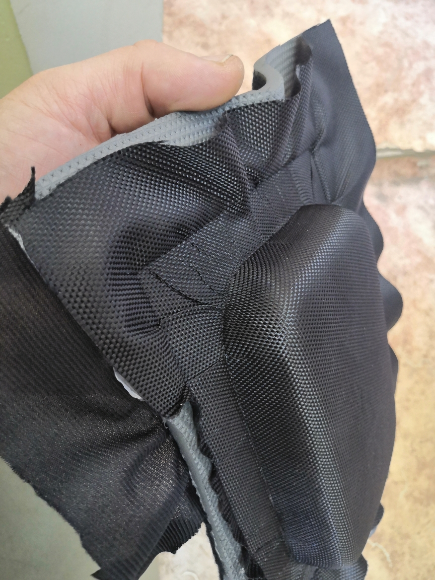 В результате экспериментов у меня на углах получаются складки материала. Никак не удается их разогнать. Полагаю дело в слабо тянущемся материале верха (внутри трикотаж и там проблем нет).