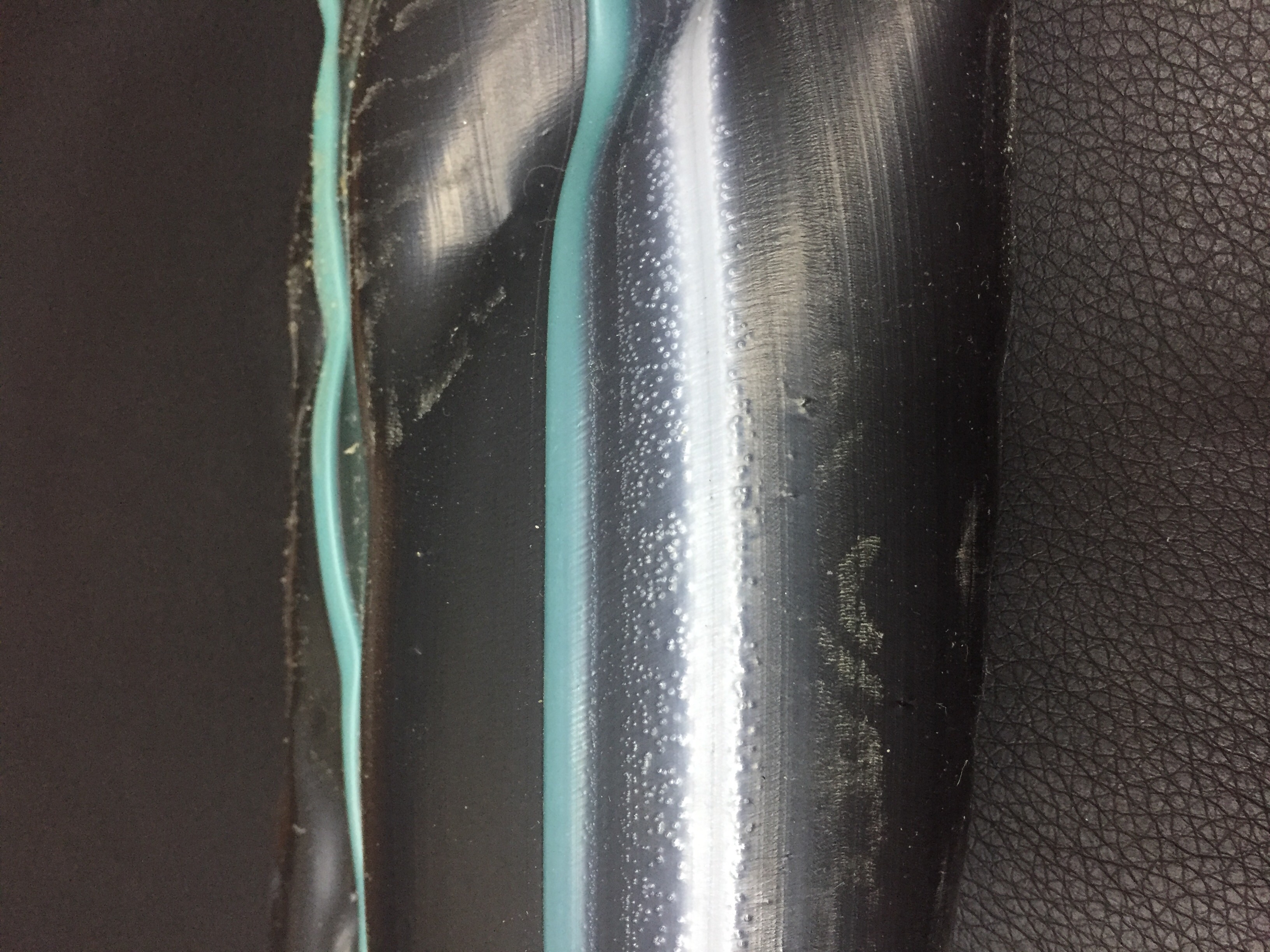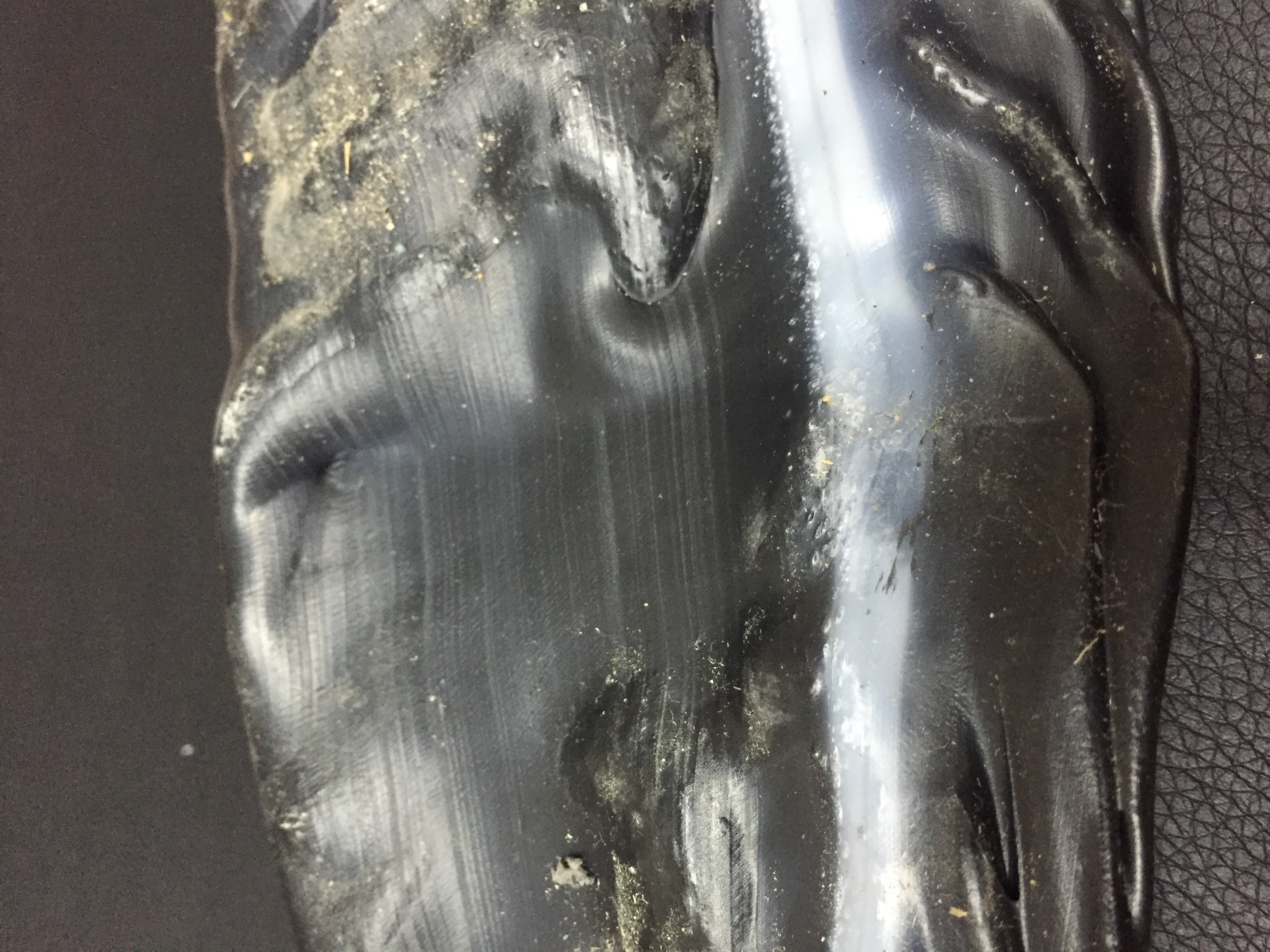 Без красителя тоже самое, происходит, сетка стоит П 56. Я предполагаю что вина всему застойная зона, но в каком месте она не могу понять. При переходе с прозрачного материала на черный выявил что с двух сторон идут прозрачные полосы да ещё и с воздухом. Это вообще ввело меня в ступор.
