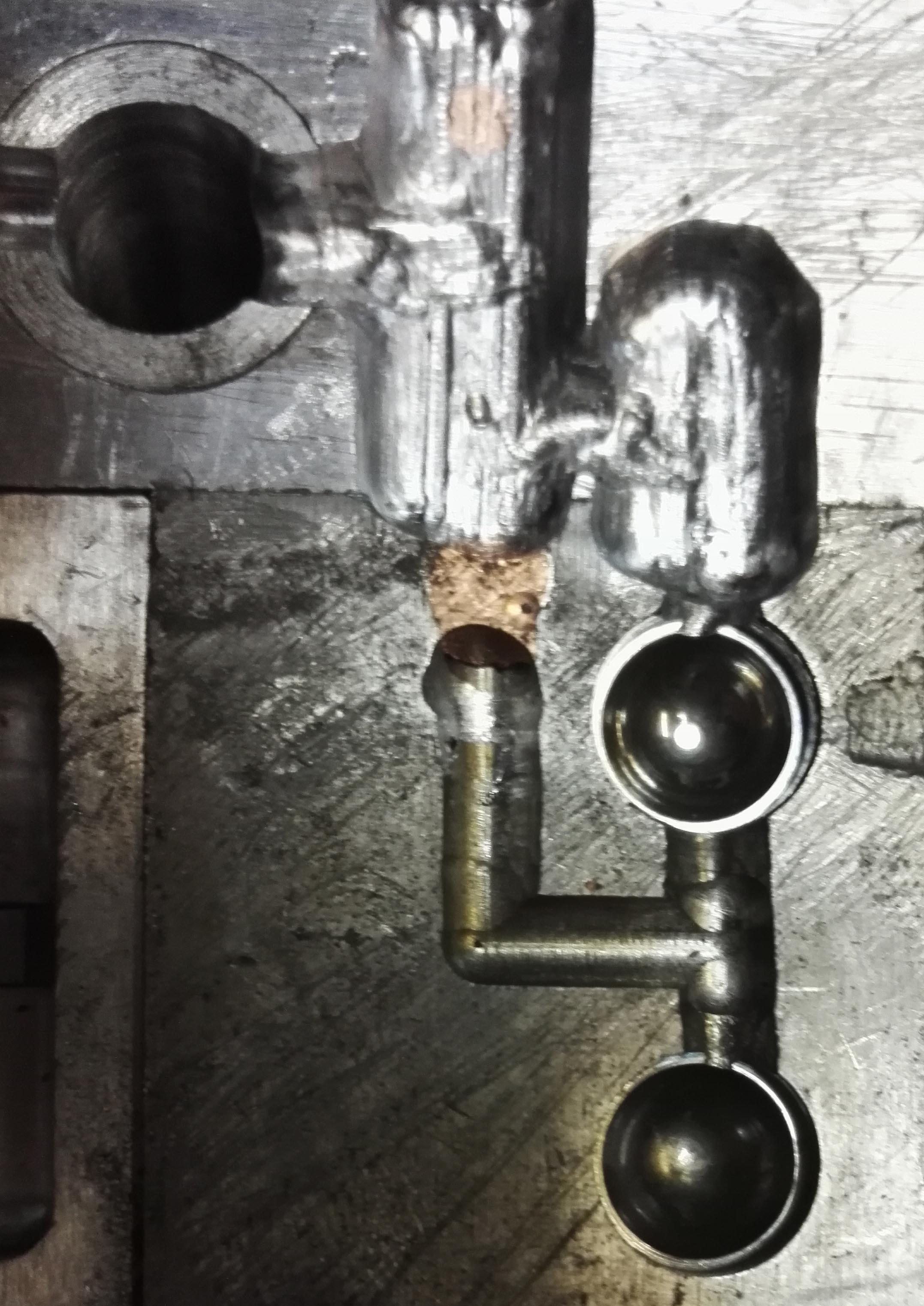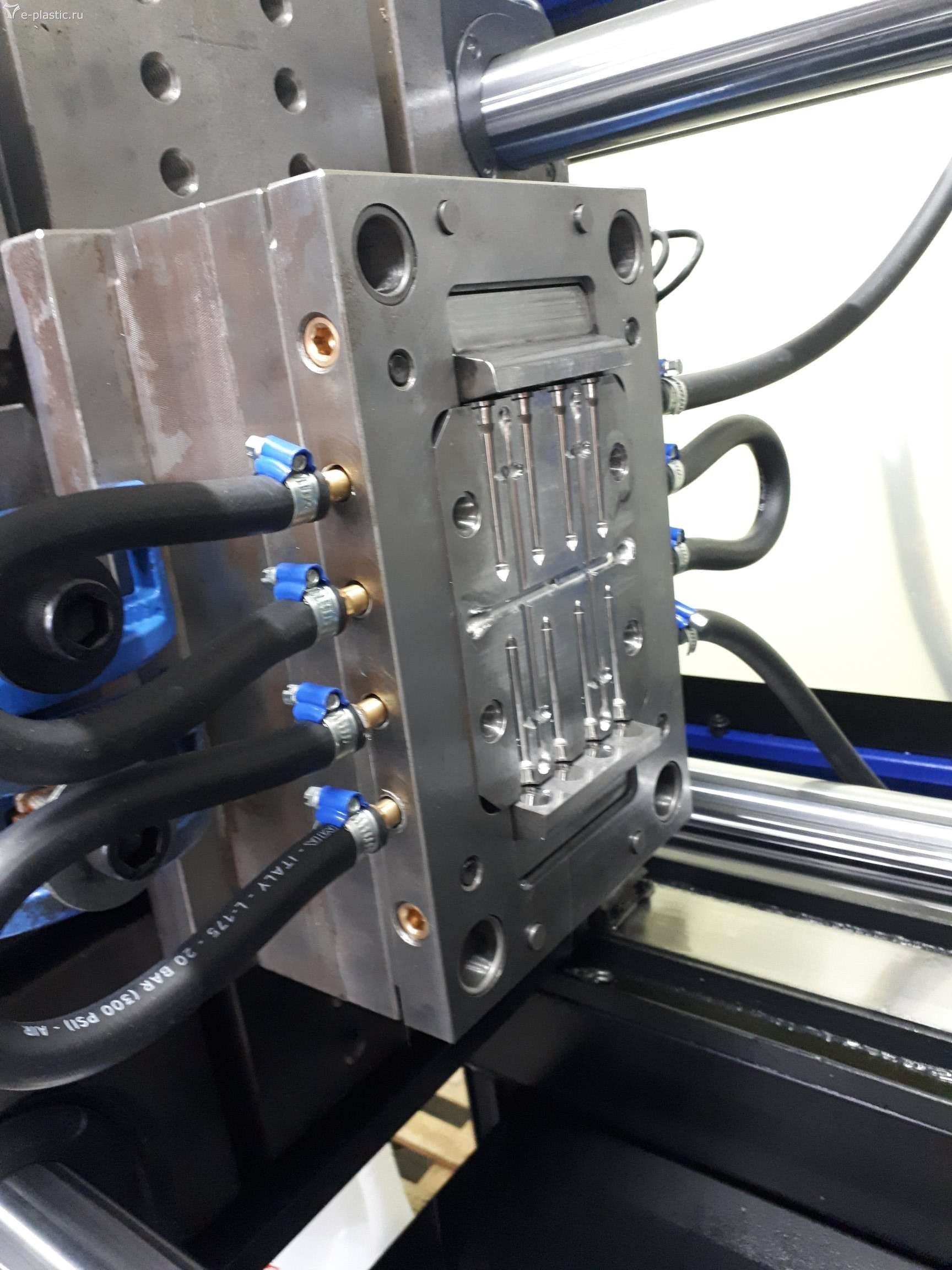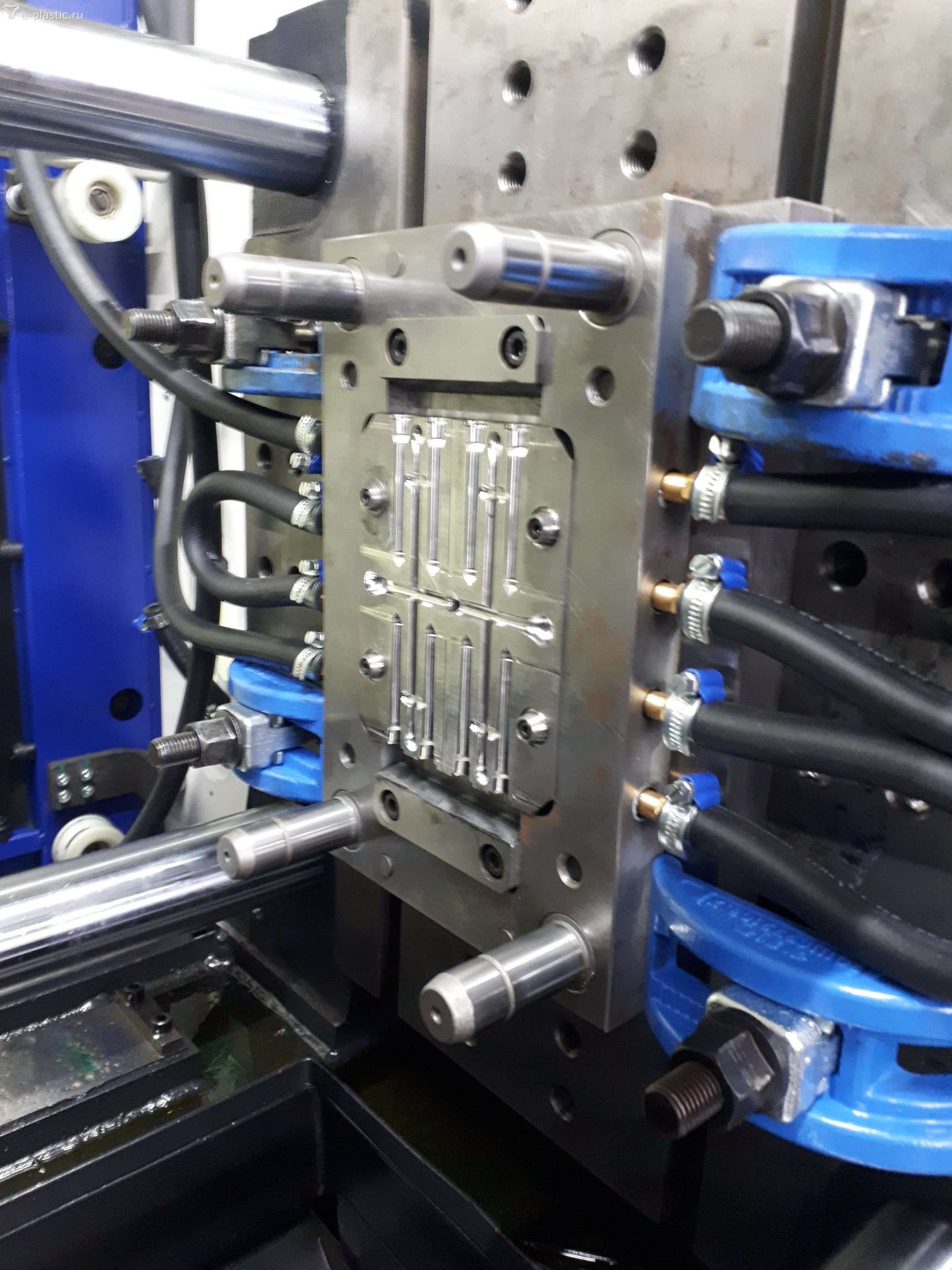 Как таковой формы еще нет. Сделали экспериментальные вставки в рабочую форму (1 гнездо). Там и опыты проводим. Уже так допилили разводку. Как получим нужный результат - будут делать новые гнезда и литниковую разводку. А пока - как бы на коленке.