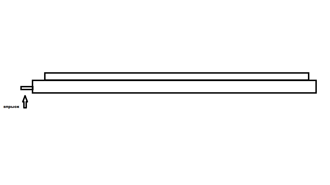 У меня назрел такой вопрос. Берем изделие например пластину 10 мм на которой перпендикулярно располагается ребро жесткости высотой 5 мм. Впрыск осуществляем с торца образец.png
