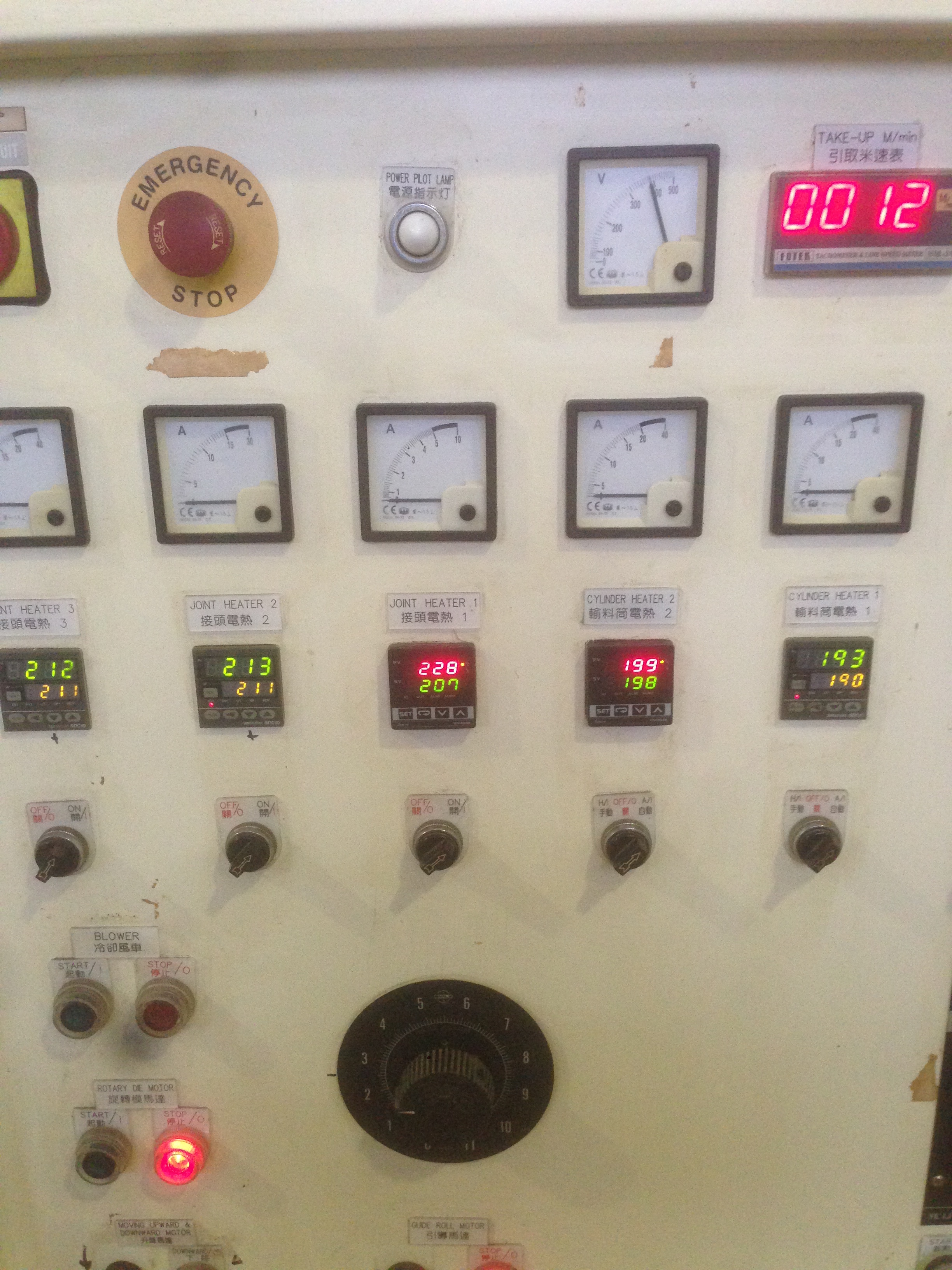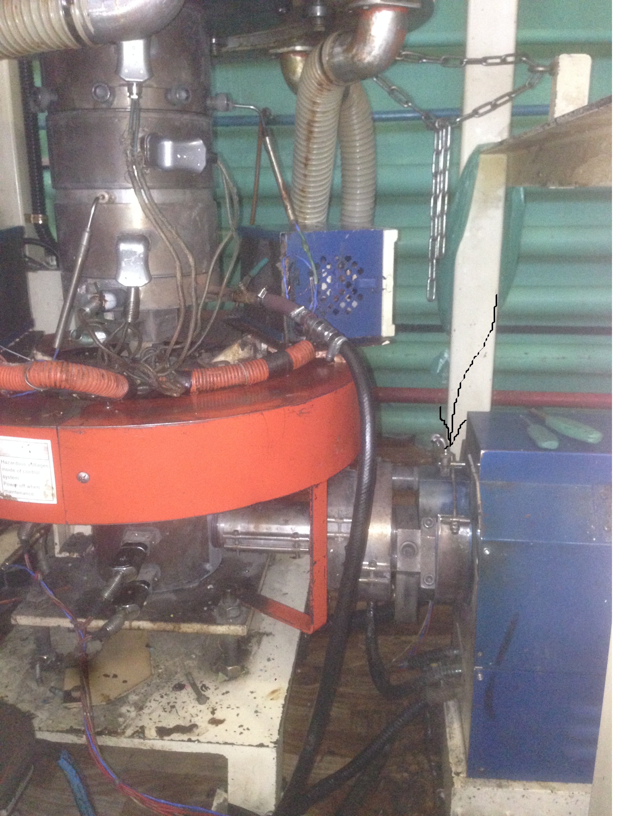 Имеем ДВЕ температурные зоны нагрева на цилиндре .С права на лево . Крайняя левая ,- узел вращения .Осталось разобратся с ещё двумя зонами( одна из которых перегрета) .Может кому то знаком этот станок ?