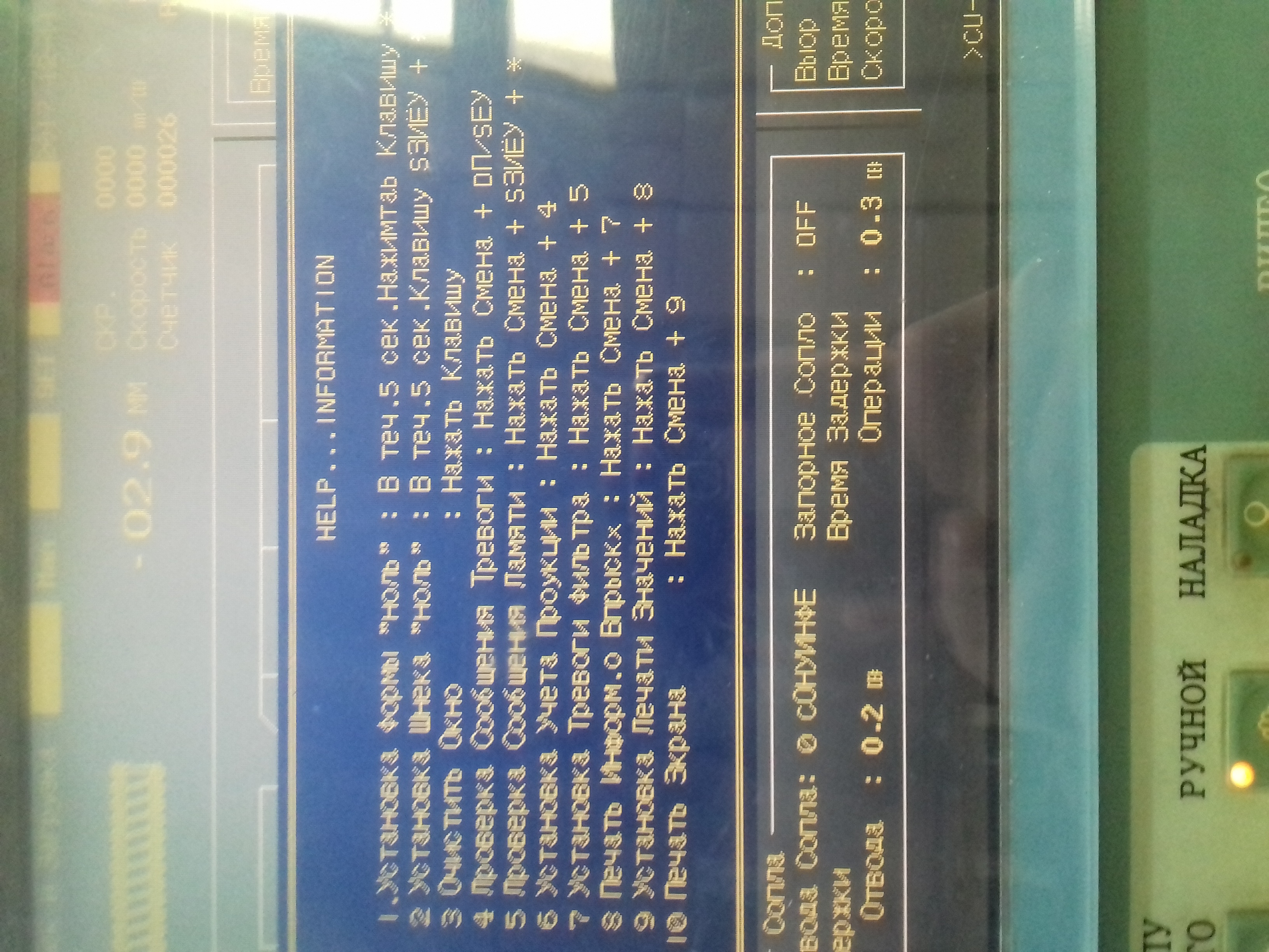 В наладочном режимеИльдарик89 писал(а):Я все это пробовал, возможно есть какие то условия. Может сопло сдвинуть или плиту сомкнуть.Тоха писал(а):"Ввод" + "Звездочка" в течении 5 секунд, если память не изменяет