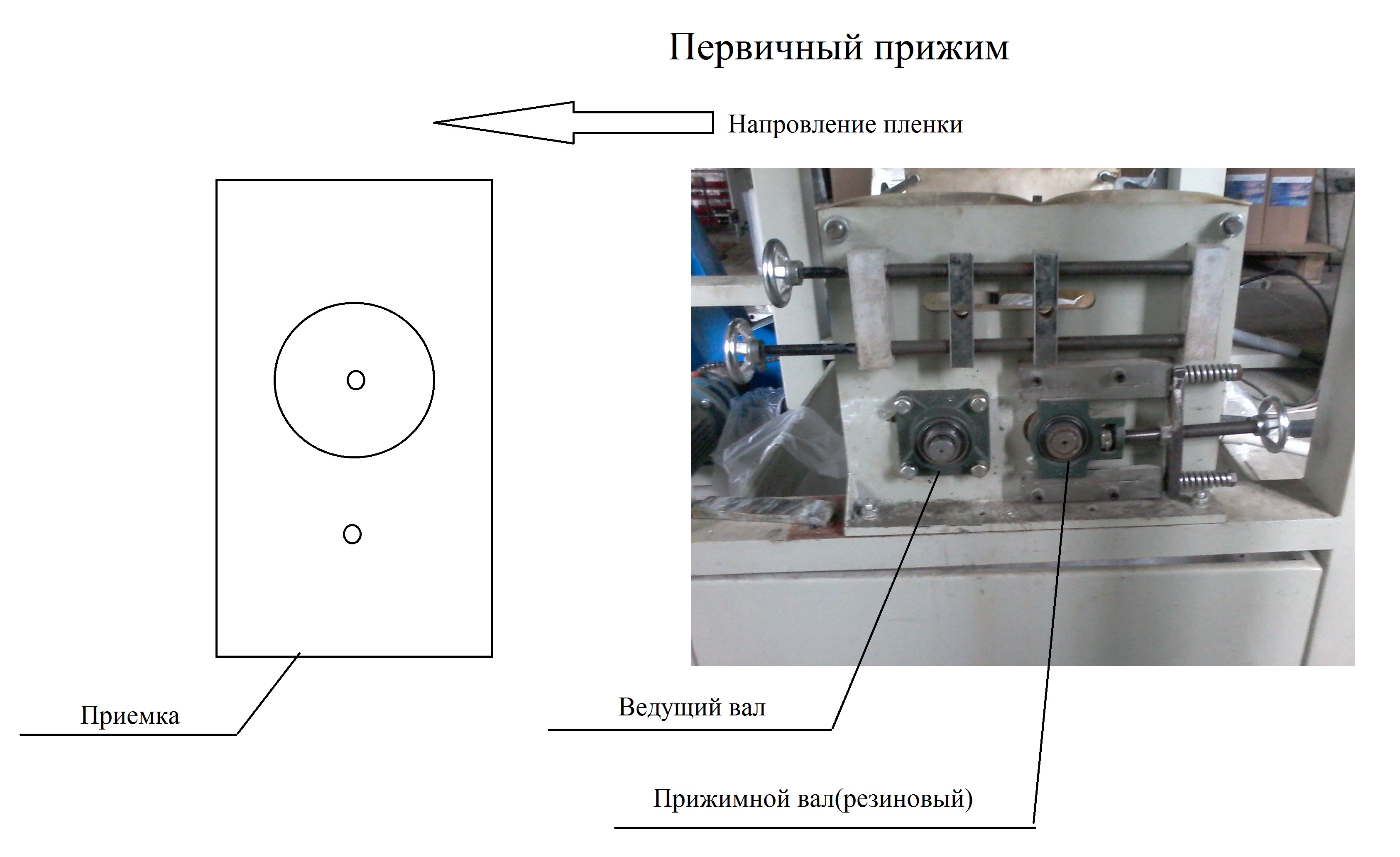 Добрый день, В узле первичного прижима пленки обнаружили возможную ошибку, (рис.1) там по нашему мнению были не правильно установлены валы. Ведущий вал был установлен позади прижимного тем самым он как бы не вытягивал пленку, а проталкивал ее под прижимной, на рисунке указанно так как мы их сейчас установили, верно ли? Так же есть еще один вопрос рис.2 там на щеках перед первичным прижимом отсутствуют отверстия для отвода воды, хотим просверлить, точнее уже начали, верно ли мы поступаем?