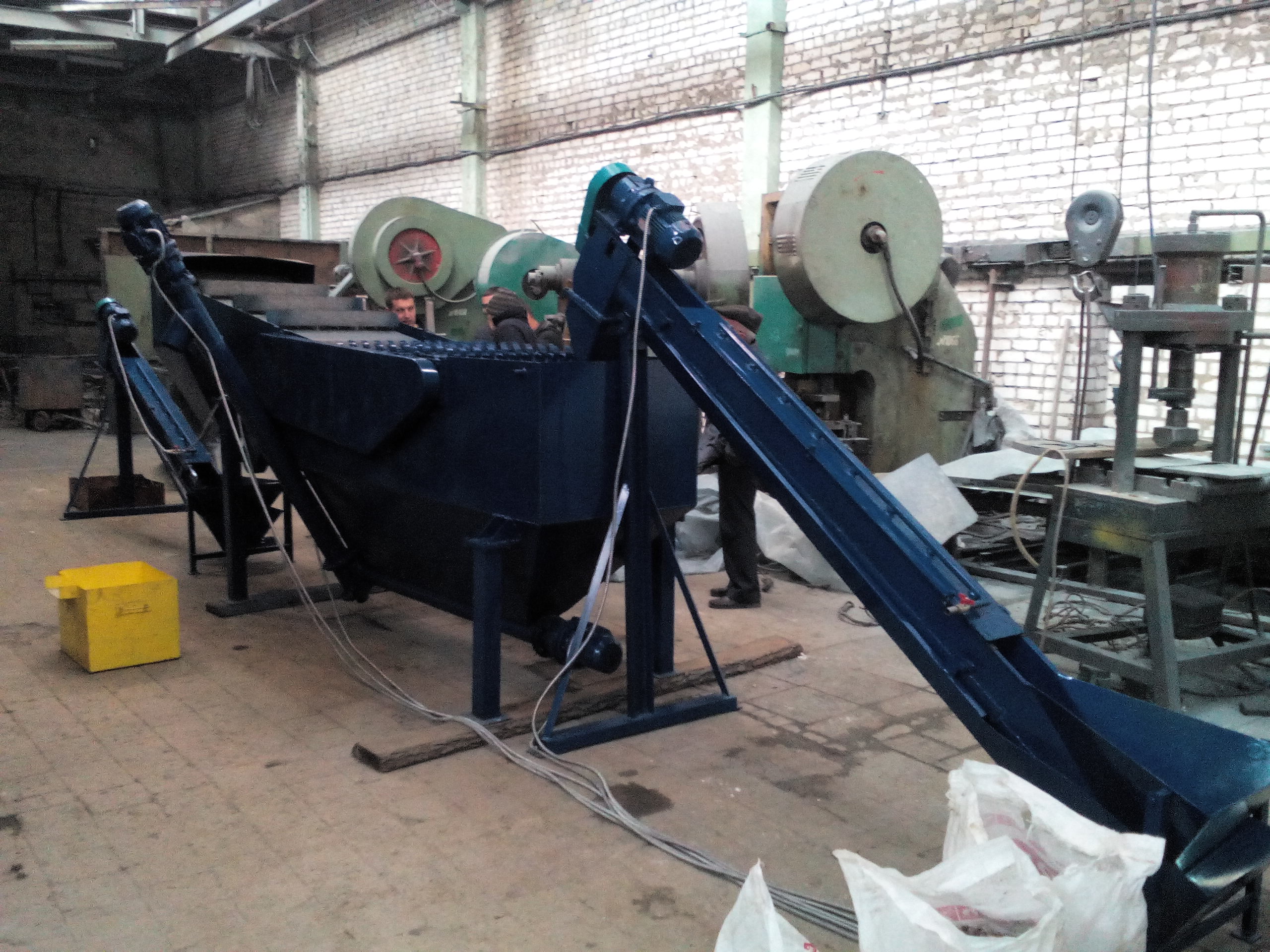 Изучив видео на сайте производителя, бросилось в глаза зависание материала в зоне загрузки. При условии что растановка оборудования является верной, то такое положение дел обусловлено не правельным углом наклона стенок загрузочного бункера. Весьма распространенная проблема самоделкиных. При запуске линии в работу в этом месте будет происходить заваливание дробленки которую не забирает моющий шнек и вываливание ее но пол. Для решения вопросса Вам потребуется деревянная палочка для пыряния дробленки либо изменение конструкции загрузки.