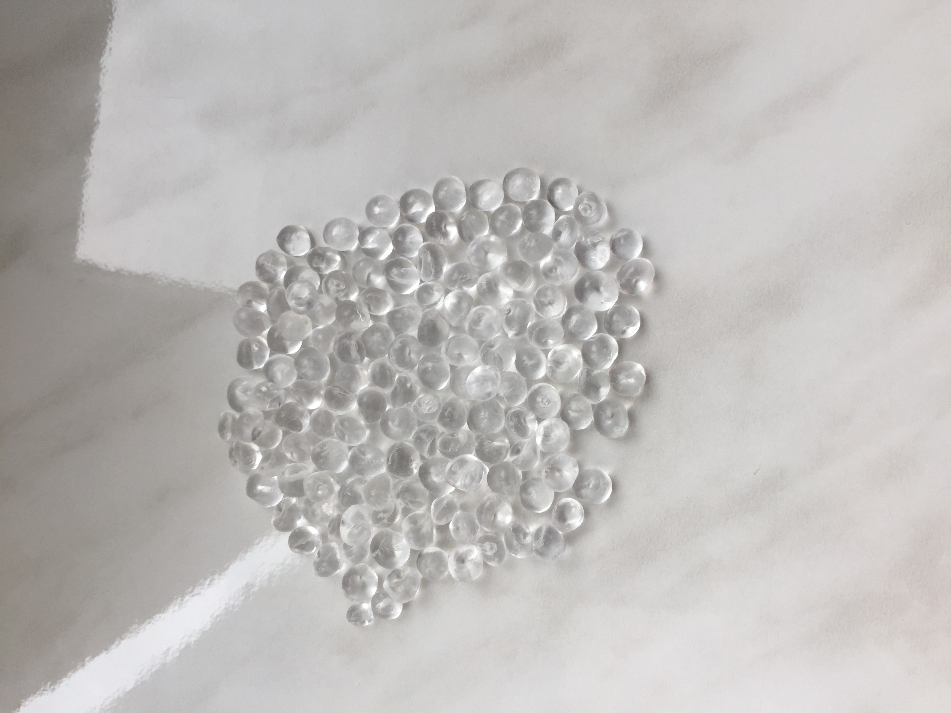 Судя по форме гранул, гранулировали с помощью подводной резки. Знаю, что так гранулируют СЭВ, но температура плавления у него 80-90 градусов. Поликарбонат - цилиндрические гранулы. Больше полимеров не видел в таком виде.