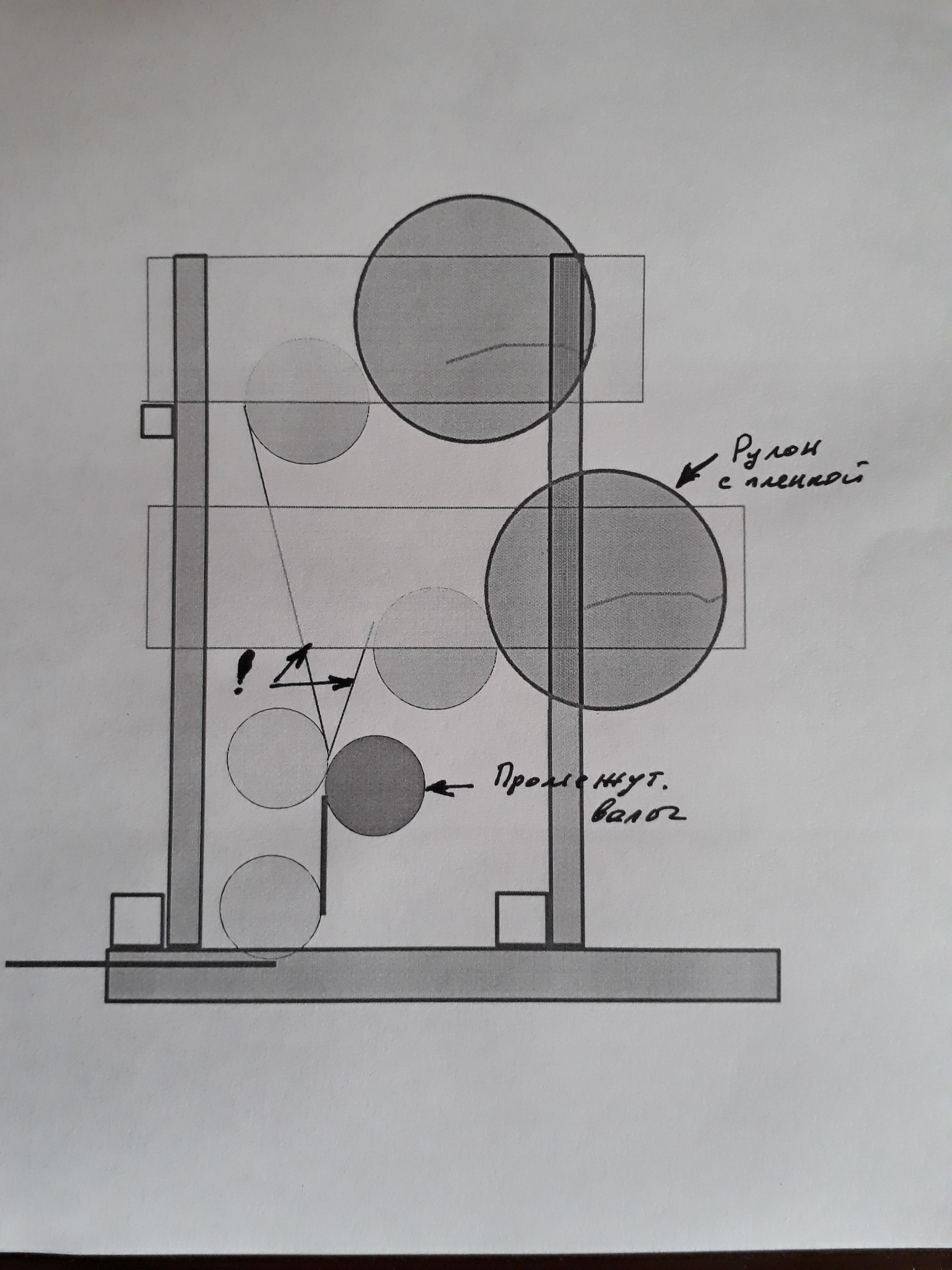 На рисунке №1 промежуточные валы, один из них плавающий подпружиненный. Мотал рукав 80мкм как на верхний , так и на нижний- складки пробегают в обоих случаях.