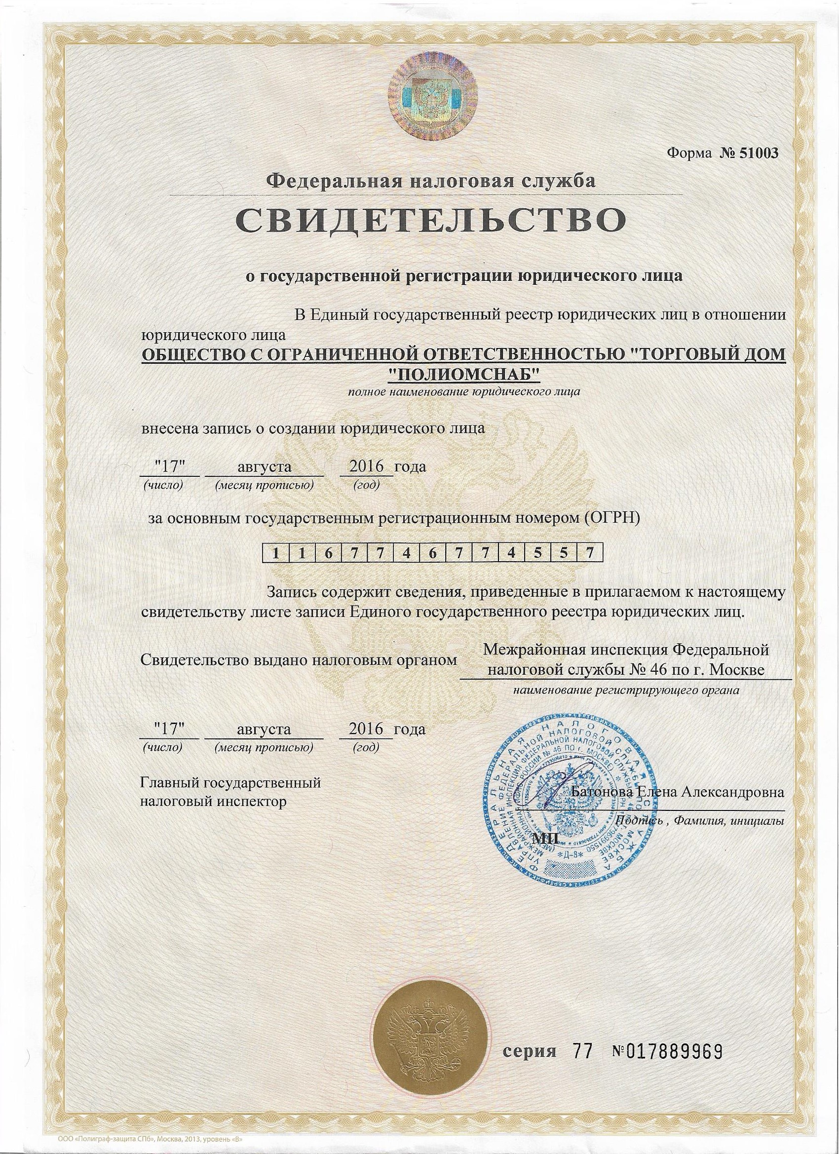 ОБЩЕСТВО С ОГРАНИЧЕННОЙ ОТВЕТСТВЕННОСТЬЮ "ТОРГОВЫЙ ДОМ "ПОЛИОМСНАБ", ИИН 7709971118 Генеральный Директор