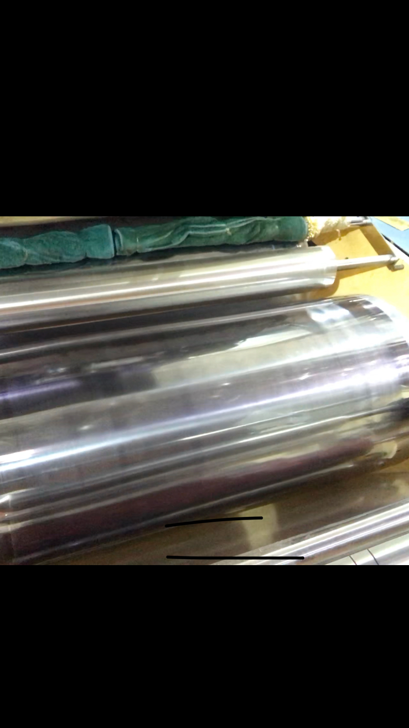 Доброго времени суток! Подскажите пожалуйста, возможно кто-нибудь владеет информацией какая толщина стенки рабочей поверхности каландра? За время зимний праздников потеряли отопление в цехе, в следствии чего, их раздуло. Возможно ли снять толщину 3-5 мм и нанести зеркало ? На фото видно волну на поверхности.Спасибо