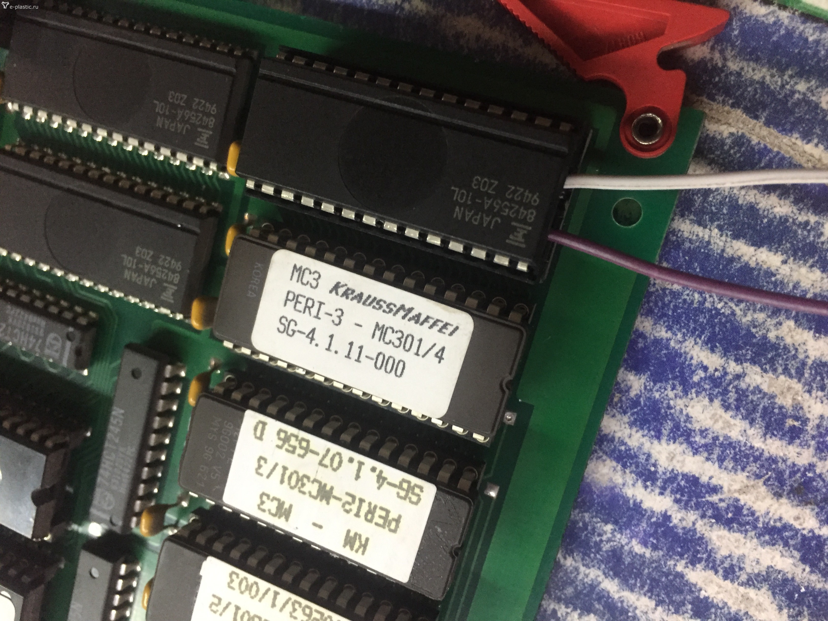 - выше описана проблема решения проблемы и устранение ошибок путем установления литиевой батарейки на примере Krauss Maffei KM150 (Микроконтроллер МС3). Замерьте напряжение на контрольных точка DS1213 - на разрядившейся батарейки у меня было 0,36вольта (см фото) на моем примере бордовый провод "+", белый провод "-".