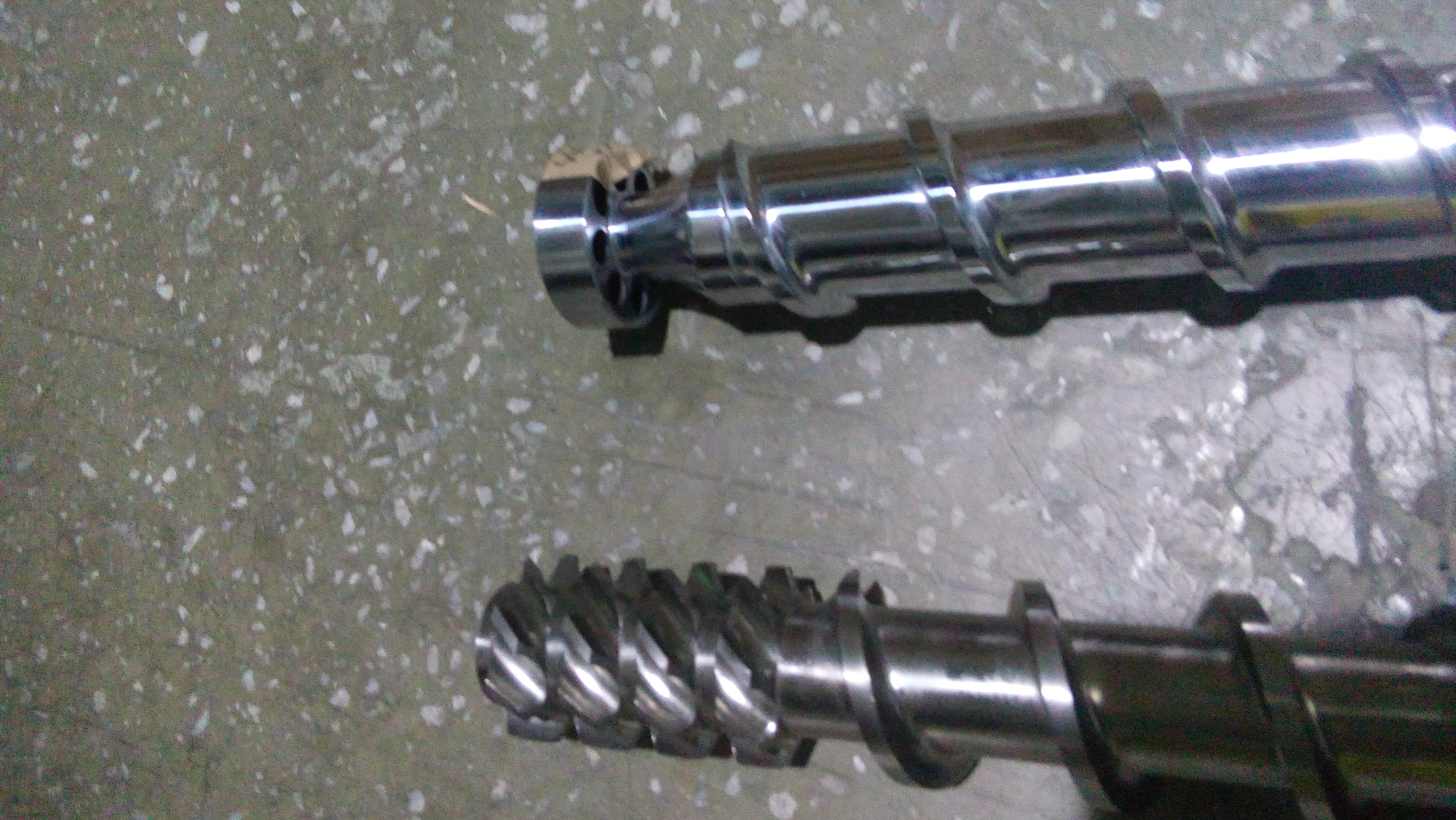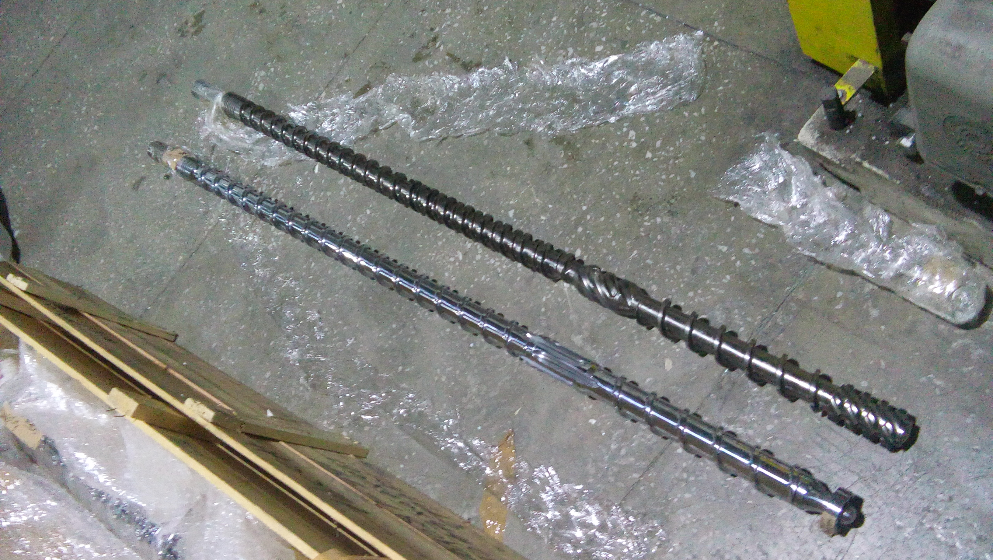 После установления причины плохого качества рукава и падения производительности на одном из двух одинаковых экструдеров с разницей в 6лет, решил заказать новую шнековую пару , хотя шнек запасной новый был, но так как я на 99 процентов был уверен и в износе трубы, то даже и не собирался менять только шнек. После того как пришёл груз я сравнил шнеки и тот что пришёл сейчас отличался от того что был в запасе( и в обоих экструдерах я думаю тоже такие, так как через фильтр видно самый конец шнека)
