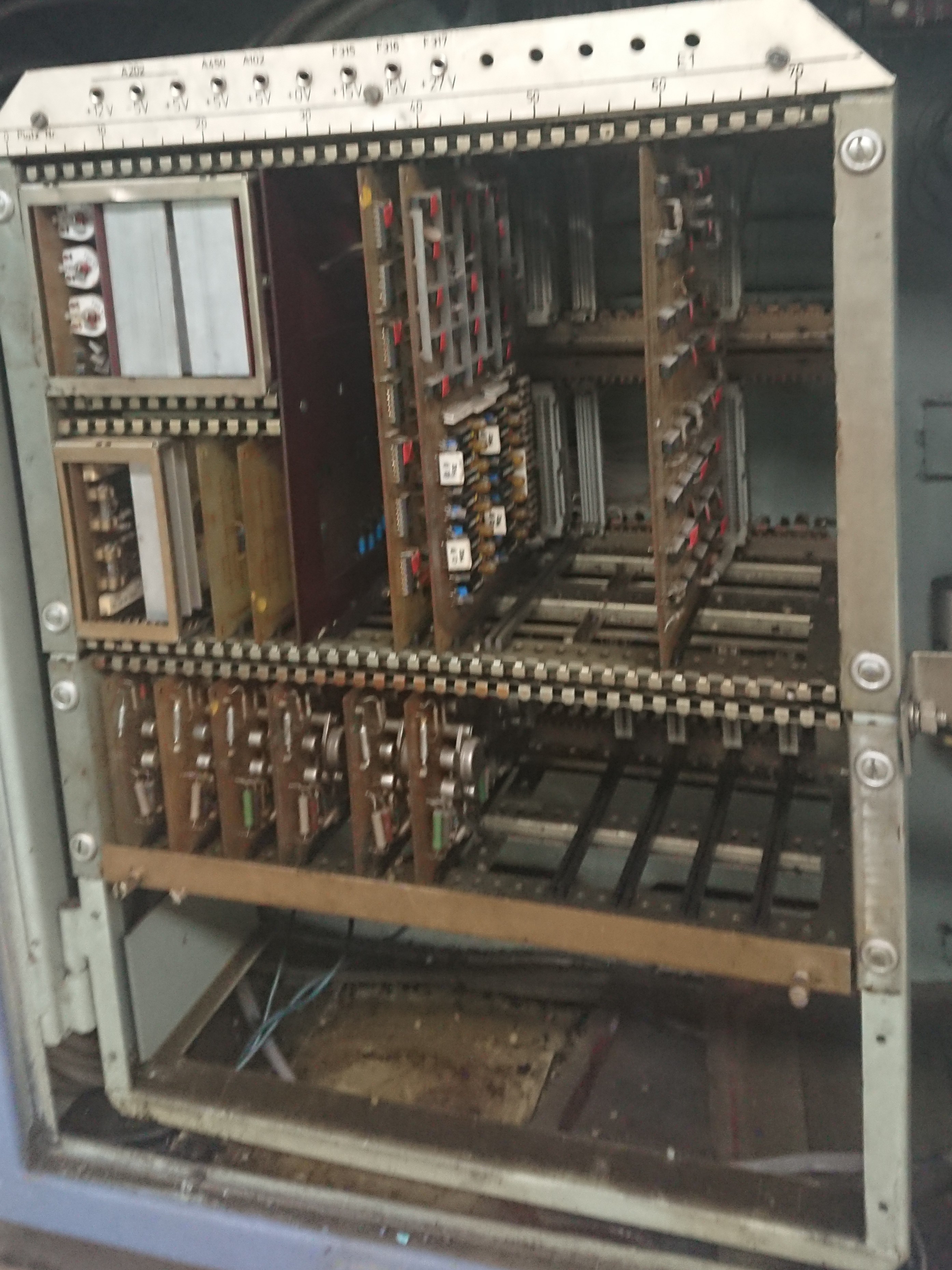 День провозился с платками SAE 03-02 деликатно хотел токи нагрузки померить разрывая коллектор каждого транзистора максимальные токи 1,5--2миллиампера получается что по включению станка они даже не работают.Так как какая же там должна быть нагрузка при таких токах разве что безконтактные пальчиковые датчики? Озадачило правда когда из логического блока удаляеш полностью платку SAE 03-02 первую справа или третью справа станок включается и защита гаснет на удаление других плат станок не реагирует и защита не гаснет в том числе если разрываеш цепи всех 12 коллекторов всех вставленных в логический блок плат.До схемы формирования защиты не дошёл--получается RS-триггеры с монтажным "И" на входы к которым просятся наверно концы магнитов? Завтра съездием на соседний завод нашли живой 105-й сравнить сигналы в т.ч на суммирующем транзисторе ложная эта ошибка или все таки законно формируется на дефектной катушке или прочее.