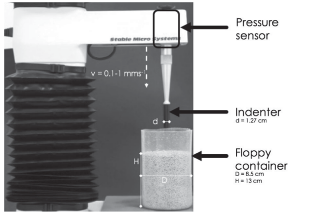1/2 Для определения основных принципов, из которых определяется механика таких сред, физики провели эксперимент, в котором в пластиковый цилиндр засыпали шариковые цепочки, состоящие из одинакового количества звеньев (от 1 до 50 в разных экспериментах) размером 2 миллиметра. После этого внутрь этой массы цепочек с небольшой постоянной скоростью (от 0,1 до 1 миллиметра в секунду) опускали цилиндрический зонд диаметром 1,27 сантиметра. Для определения силы трения во время эксперимента исследователи измеряли силу сопротивления, которая действует на зонд со стороны среды, а после окончания эксперимента образовавшуюся структуру вытаскивали из цилиндра наружу.