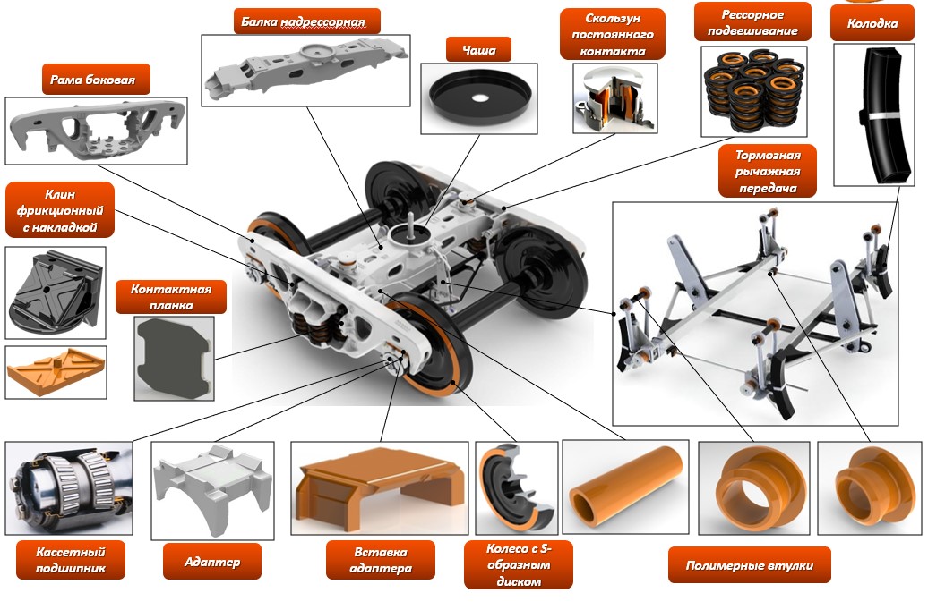 опорники для подпятников вагонных тележек типа Barber, делают из наполненного СВМПЭ, только импортное изделие. Чашу подпятника из 30ХГСА и аналогов.